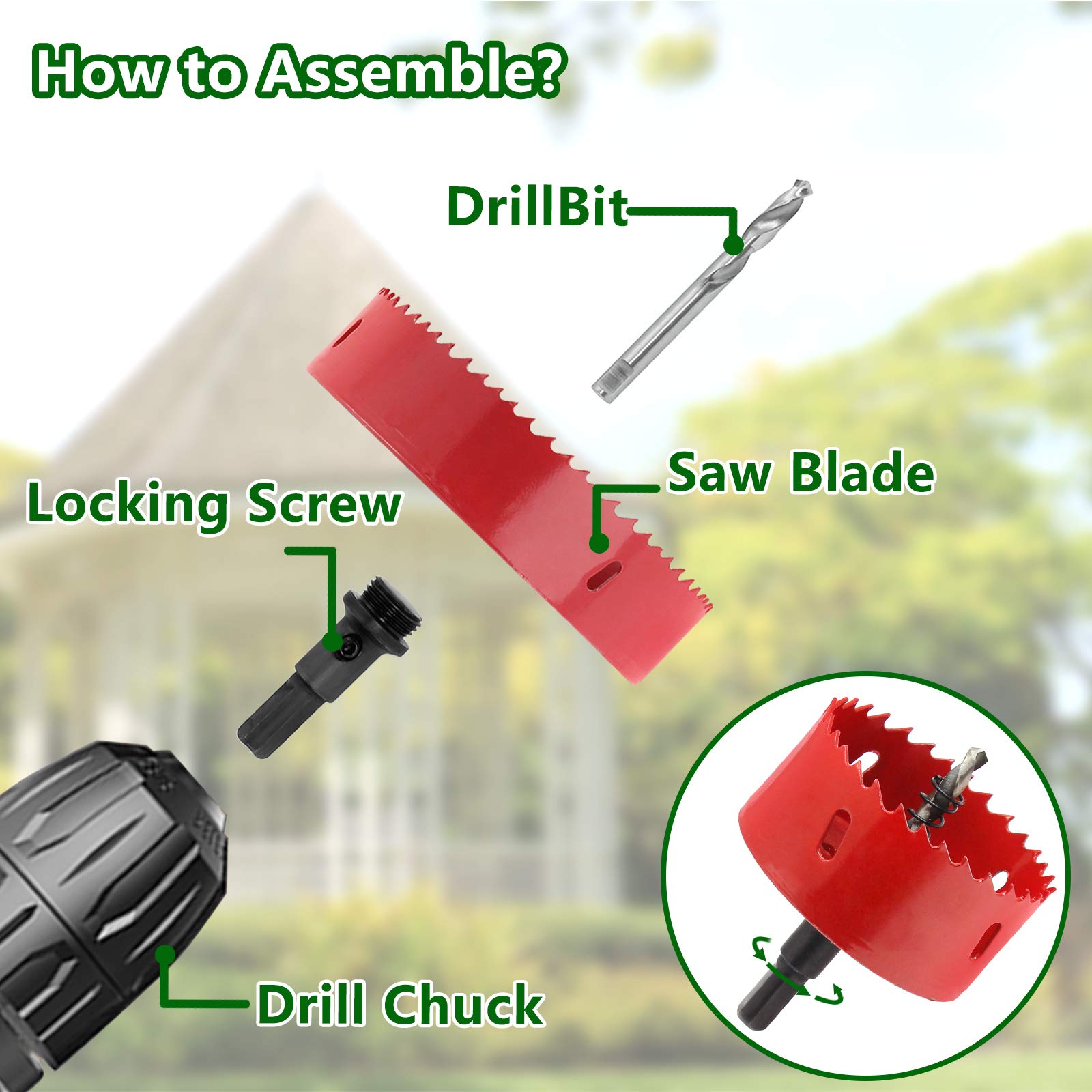 Easy to Use: Install the pilot hole and the hole saw, holding the drill straight to cutting surface and drill as clockwise rotation at a slow speed and holding steady.