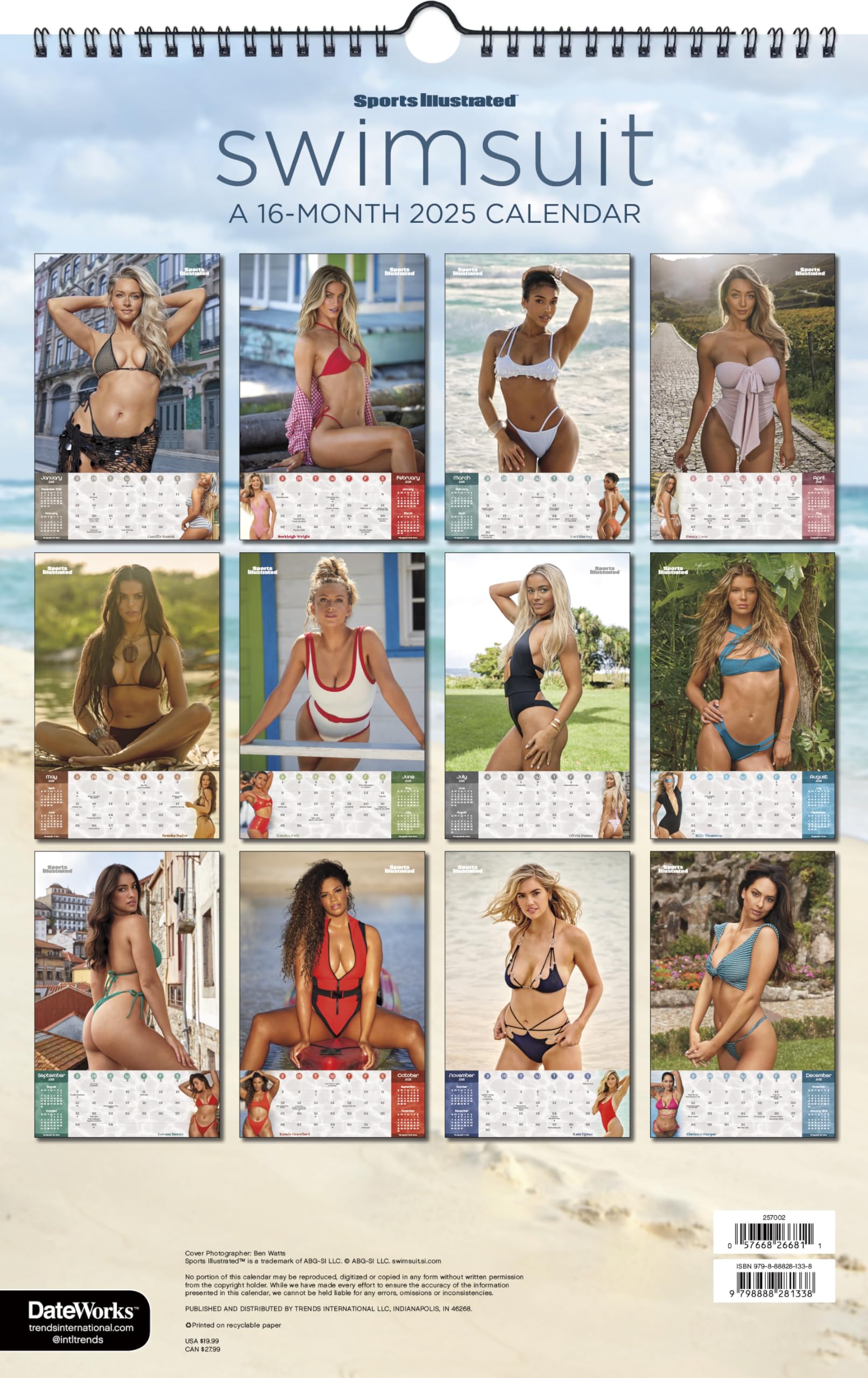 Featuring full-body images of some of the sexiest SI Swim models you've ever seen lounging on the beach in the season's hottest swimwear and bikinis, this 2025 SI Swim Calendar is delicious perfection. You'll frolic through the year, enjoying every sun-kissed second of it. These spiral-bound Wall Calendar includes an attached hanger so you can easily hang them on a wall, corkboard, or bulletin board at home or work. DateWorks Poster Calendars feature a calendar page for each month of 2025, as well as the last four months of 2024. The perforated pages allow you to easily remove each calendar spread after the month is over so you can display it as a cool new wall poster! This 2025 Sports Illustrated Swimsuit Oversized Calendar features monthly pages for January to December 2025, as well as the last 4 months of 2024 Tear-off, perforated calendar pages become 13 new wall posters Wire-o spiral binding includes a hook for easy hanging so you can hang it on a wall, cork board, or bulletin board at home, school, or the office to Stay organized and productive by keeping track of important dates Language: English Calendar Dimensions are 11" x 17" and Poster Dimensions are 12.5" x 11"