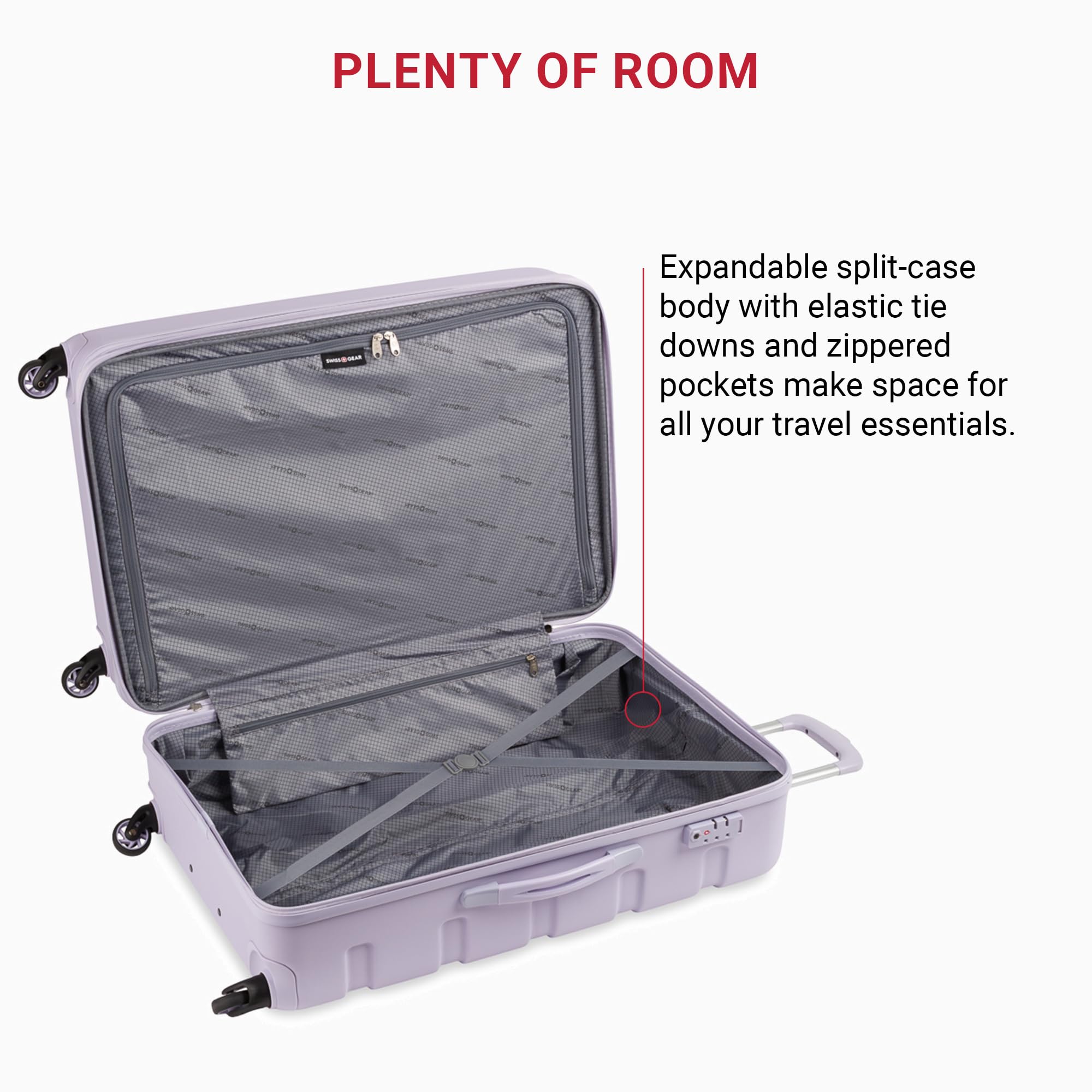 Description SwissGear 7366 Hardside Expandable Luggage with Spinner Wheels is the perfect bag for your next trip. This 27-inch suitcase is made of durable ABS/PC and includes co-molded lift handle(s) with soft rubber hand grips for easy maneuverability. The split-case design expands for additional packing space and internal pockets keep you organized. The 8 360-degree multi-directional spinner wheels and a premium, push-button steel locking telescopic handle make it easy to navigate through the airport. With outside dimensions of 30.75 x 20.5 x 12.25 inches including wheels and handles, this suitcase offers 27.25 x 19 x 12.25 inches of packing space. This hardside luggage is perfect for those who need a lightweight and durable suitcase for their travels. The hardshell exterior is designed to protect your belongings from the wear and tear of travel, while the spinner wheels make it easy to move around. The telescopic handle is designed to be comfortable and easy to use, and internal pockets help you stay organized. Plus, this suitcase comes with a 10-year warranty against defects in materials and workmanship.