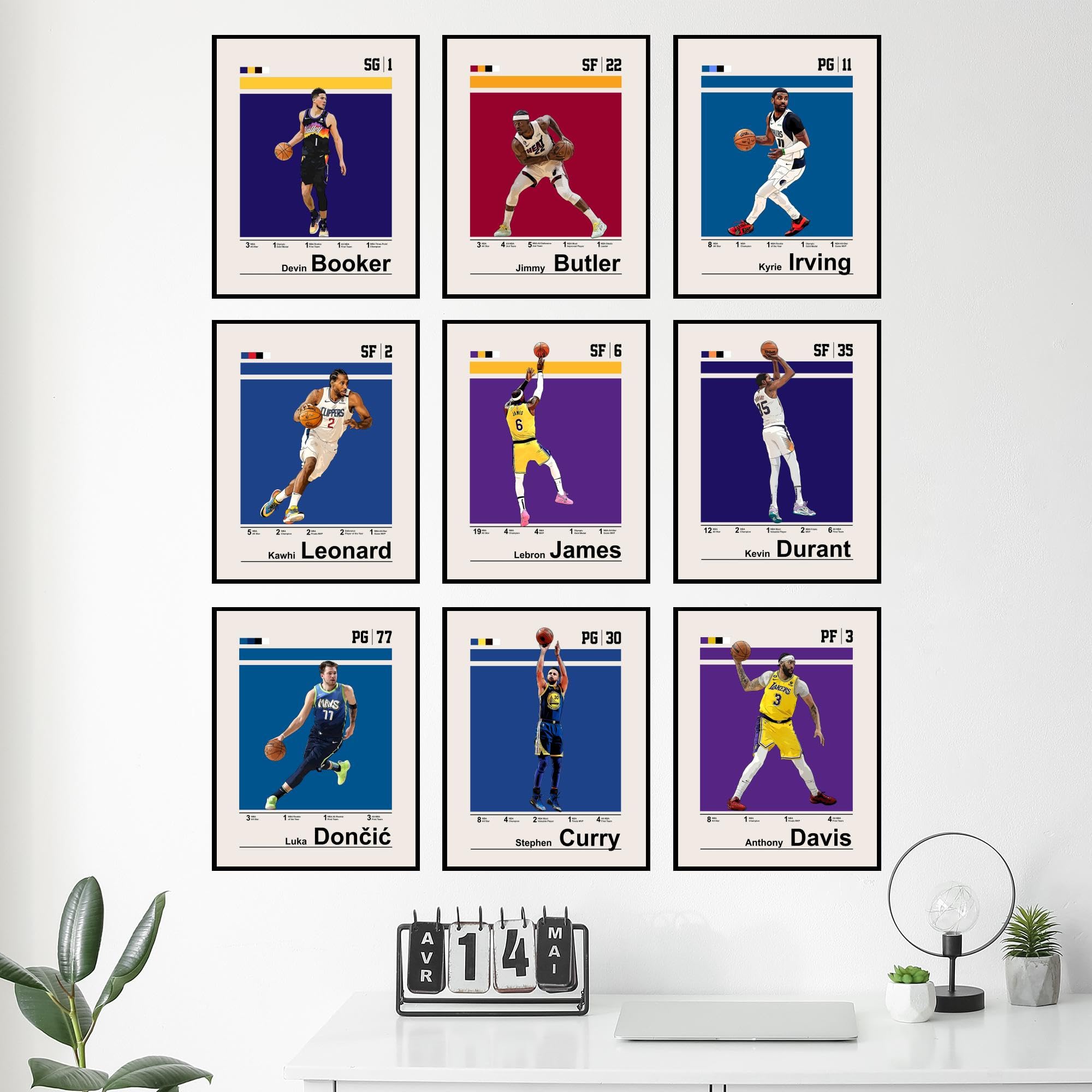Educational and Decorative: These basketball posters for boys bedroom serve as both wall art and an educational tool, detailing the career highlights of players like Anthony Davis, Jimmy Butler, and Devin Booker. It's a perfect blend of style and substance for young fans.