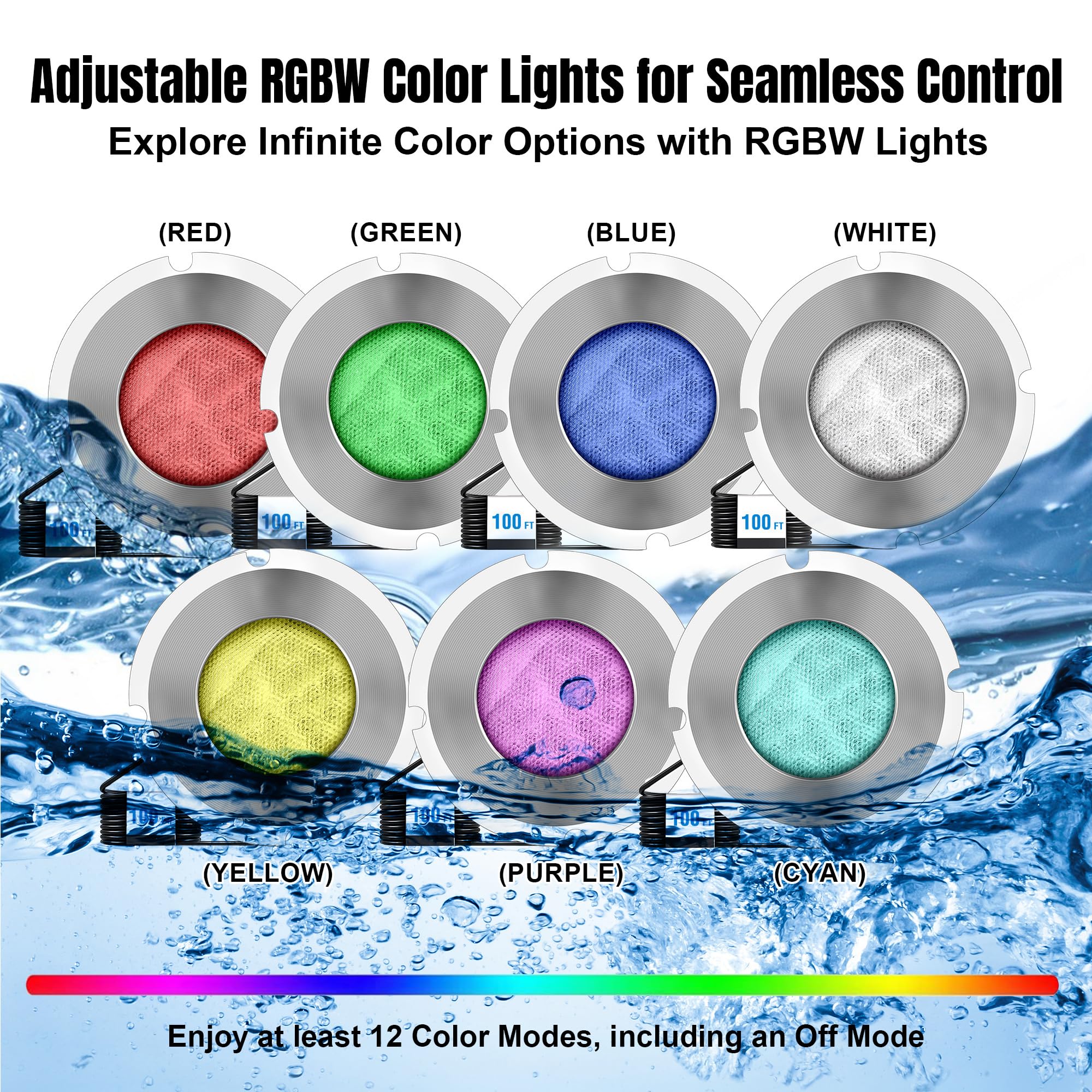 Easily manage your lighting with the included remote, operational from up to 180 feet away (batteries not included). Select from a range of static and dynamic modes, offering over 16 colors, flashing, jumping changes, and single-color options. Transform your pool into a vibrant visual experience