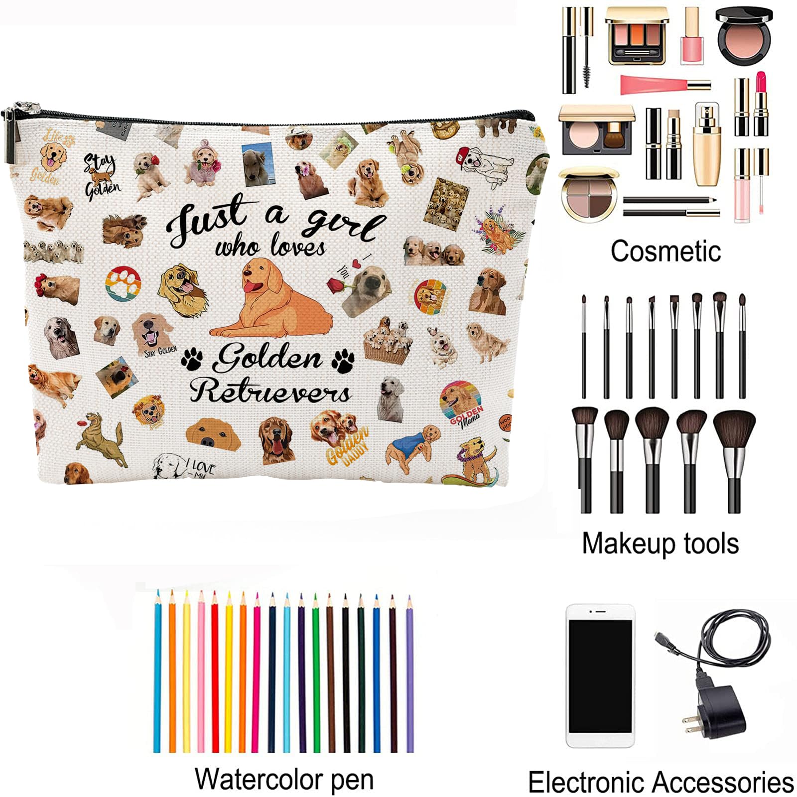 Perfect Gift: This cosmetic bag is not only suitable for your own use, but also suitable as a gift, which is perfect for family, friends, sisters, coworkers, girlfriends, mom, wife, daughter, teachers, birthday gifts, anniversary surprises, Christmas, New Year, Valentine's Day gifts. Also great for golden retriever owners, dog theme parties and gifts for golden retriever lovers.