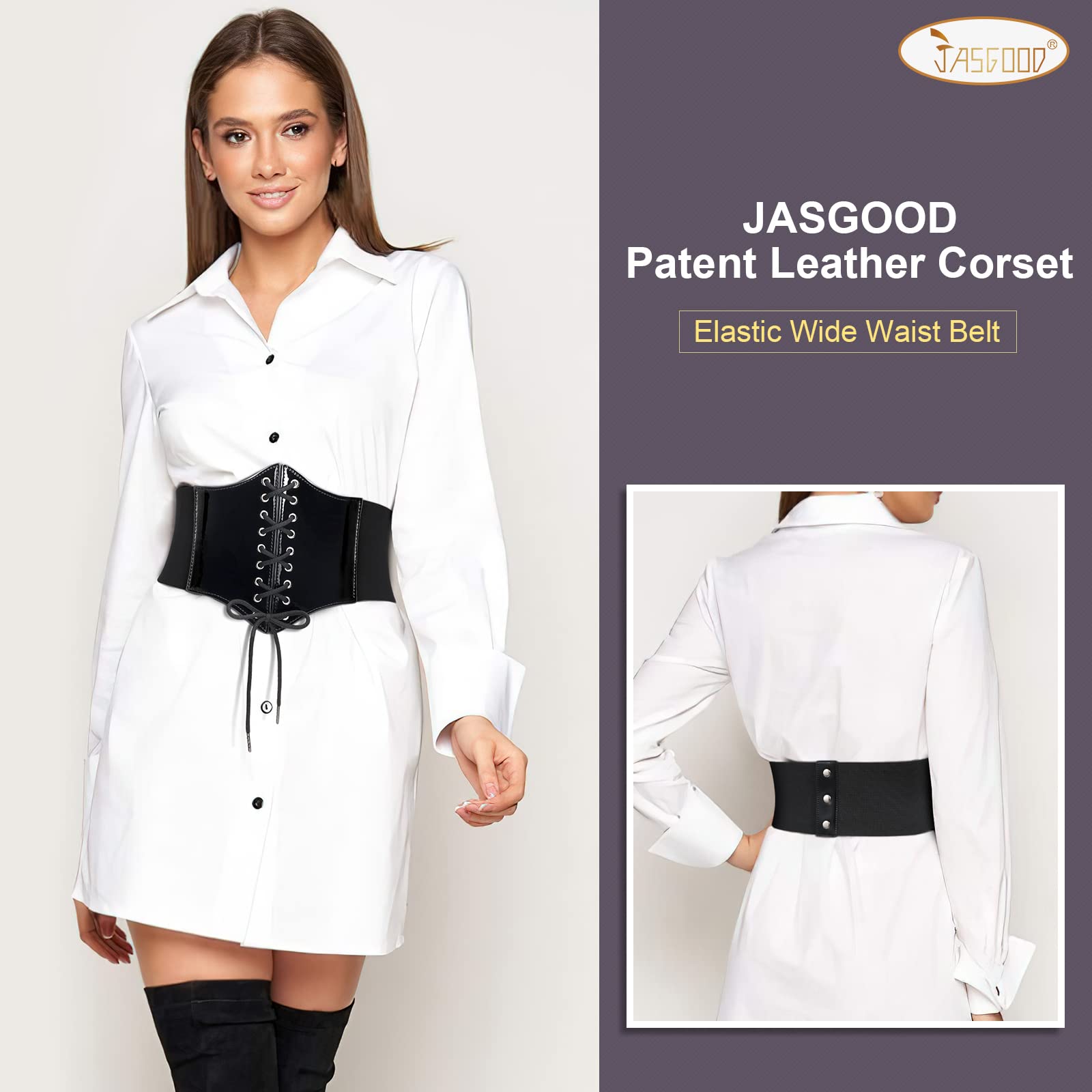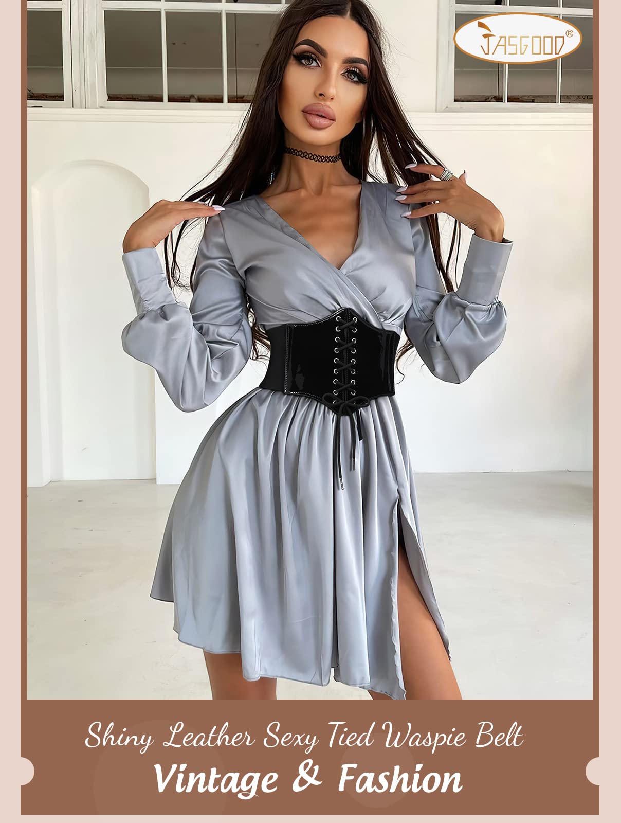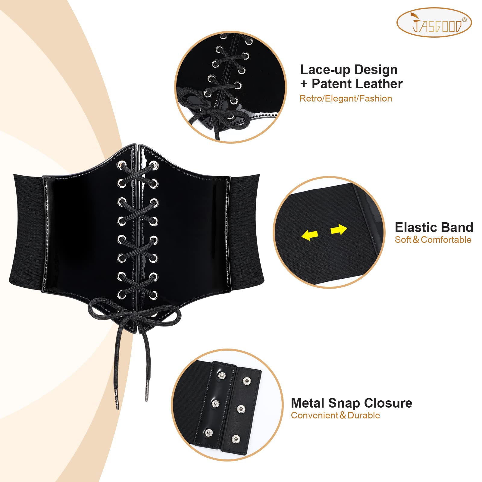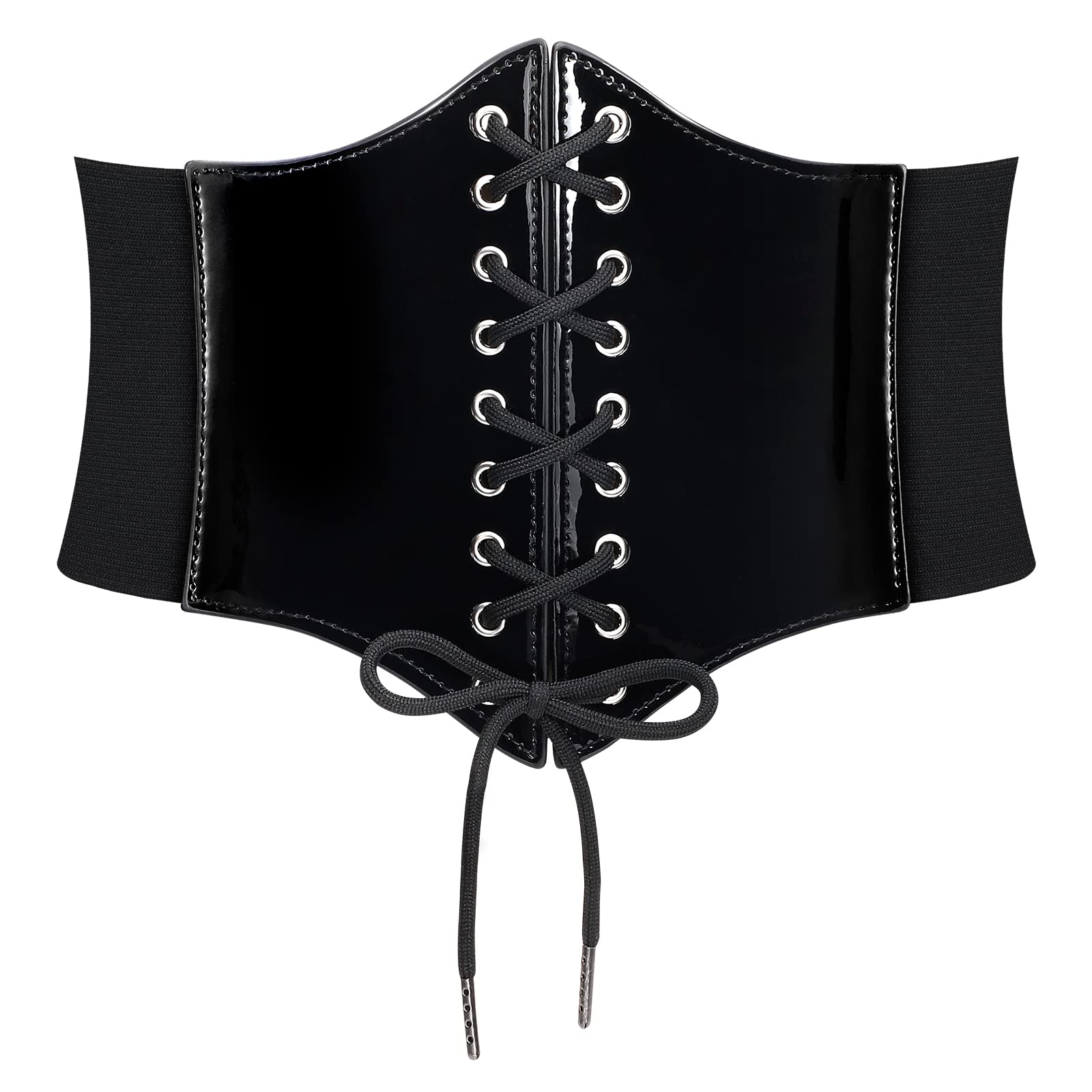 CLASSIC DESIGN– Classic vintage style leather lace-up tied waspie corset belt, quality PU leather front sewed with well elastic wide band, fastened by 3 snap buttons, which is easy to put on and remove. This waspie corset belt is super comfortable to wear. Flatters your waist. The 7.6" width prevents dress belt from rolling up or rolling down in wearing.