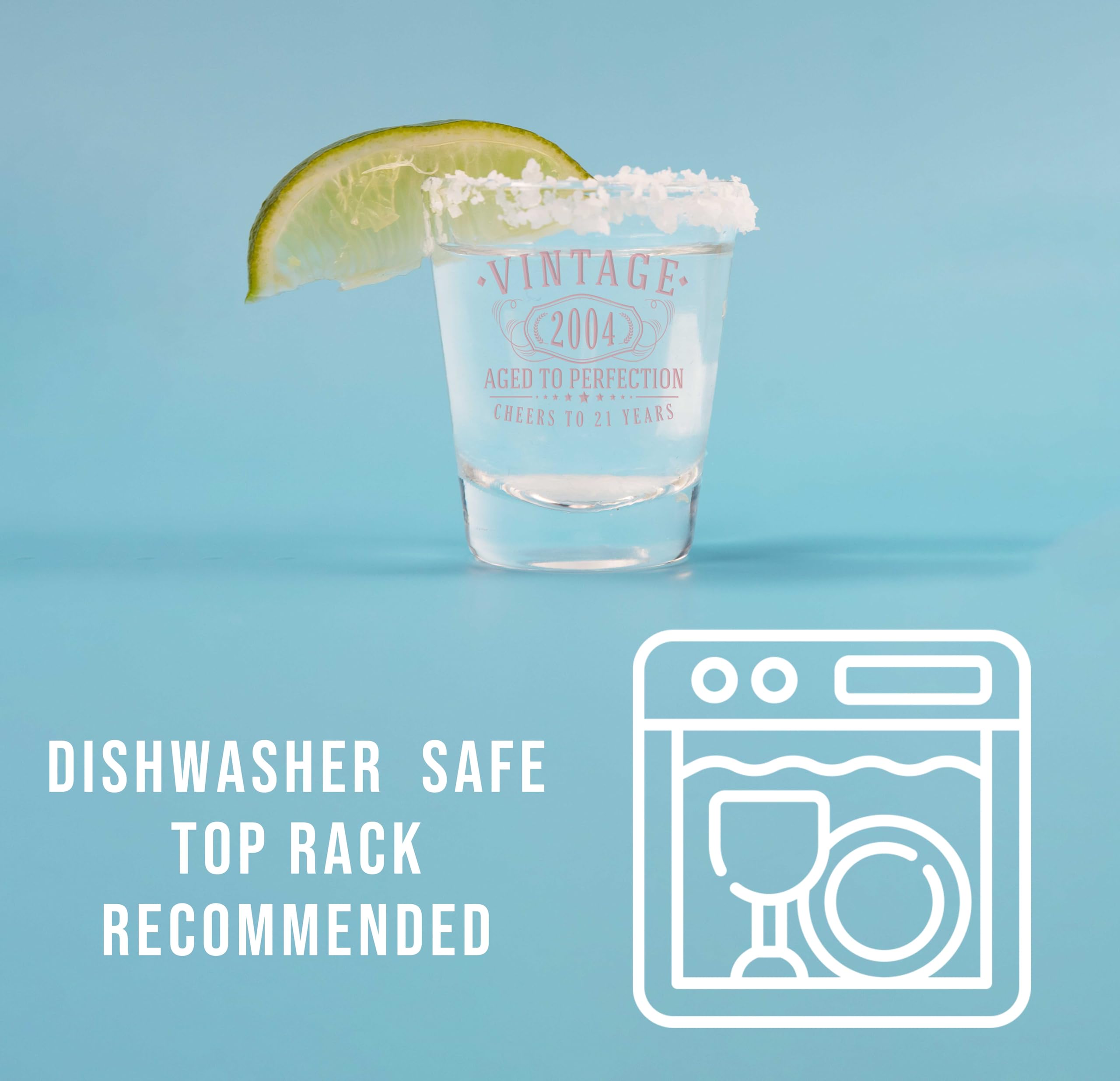 Printed design is high quality and dishwasher safe, making these easy to care for. This shot glass with the vintage design is a gift that will make any birthday more special.
