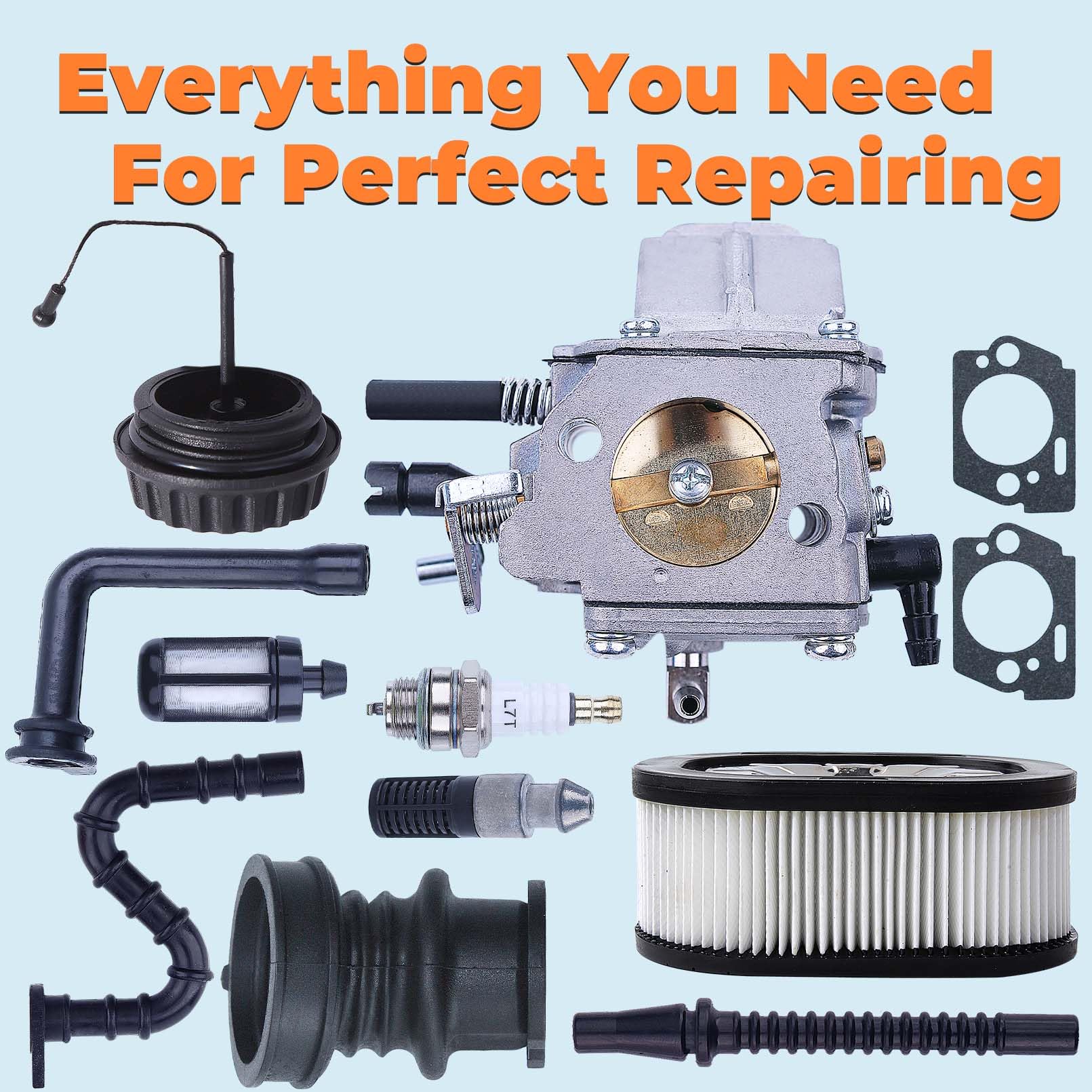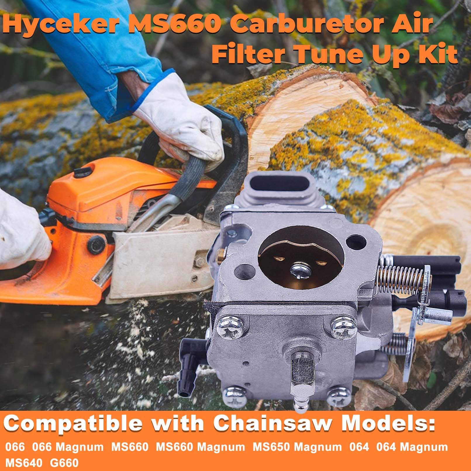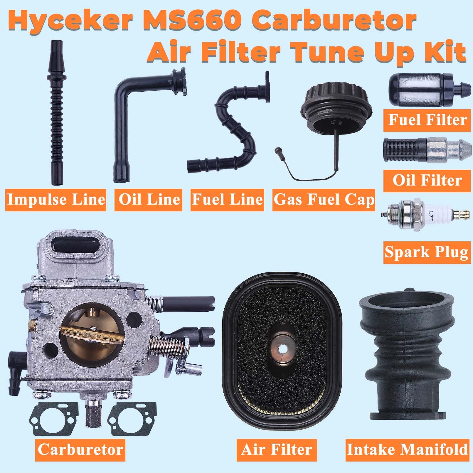 For Stihl 066 MS660 Carburetor Kit Includes: 1 x Carburetor (no limiting caps), 1 x Air Filter, 1 x Intake Manifold, 1 x Spark Plug, 1 x Fuel Line, 1 x Fuel Filter, 1 x Gas Fuel Cap, 1 x Oil Filter, 1 x Oil Line, 1 x Impulse Line