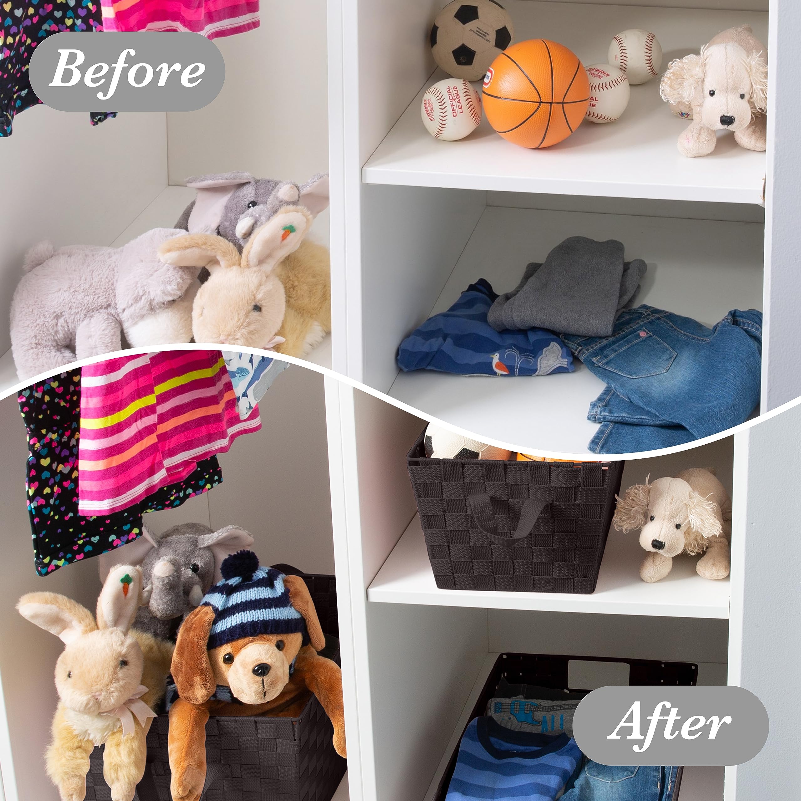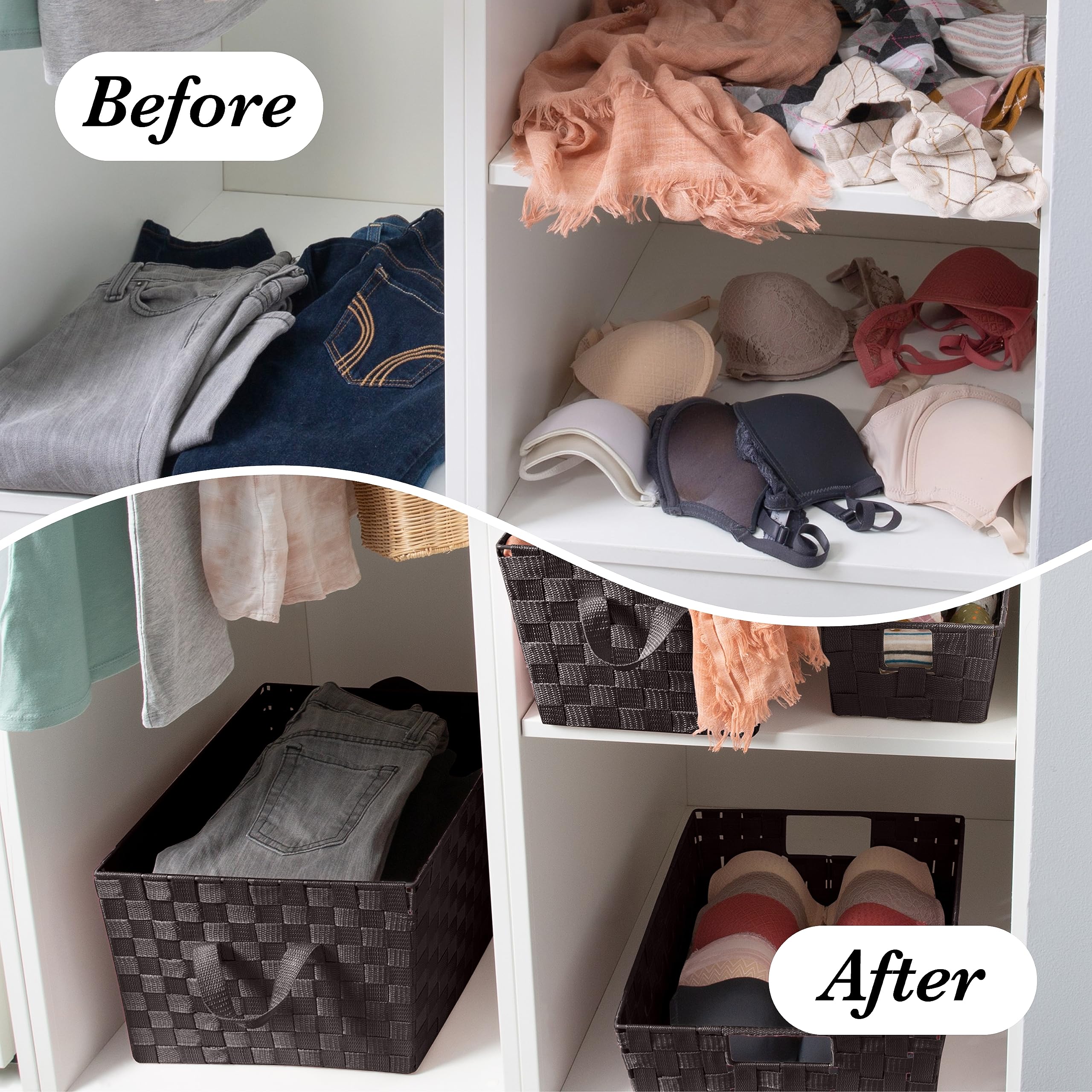 Organize your entire home with these decorative Simplify woven baskets. Comes in many colors and styles to fit your storage needs for every room in the house. Decorative design to add to your décor. Small baskets for the little items and large baskets for your blankets, magazines and more A basket for every storage need
