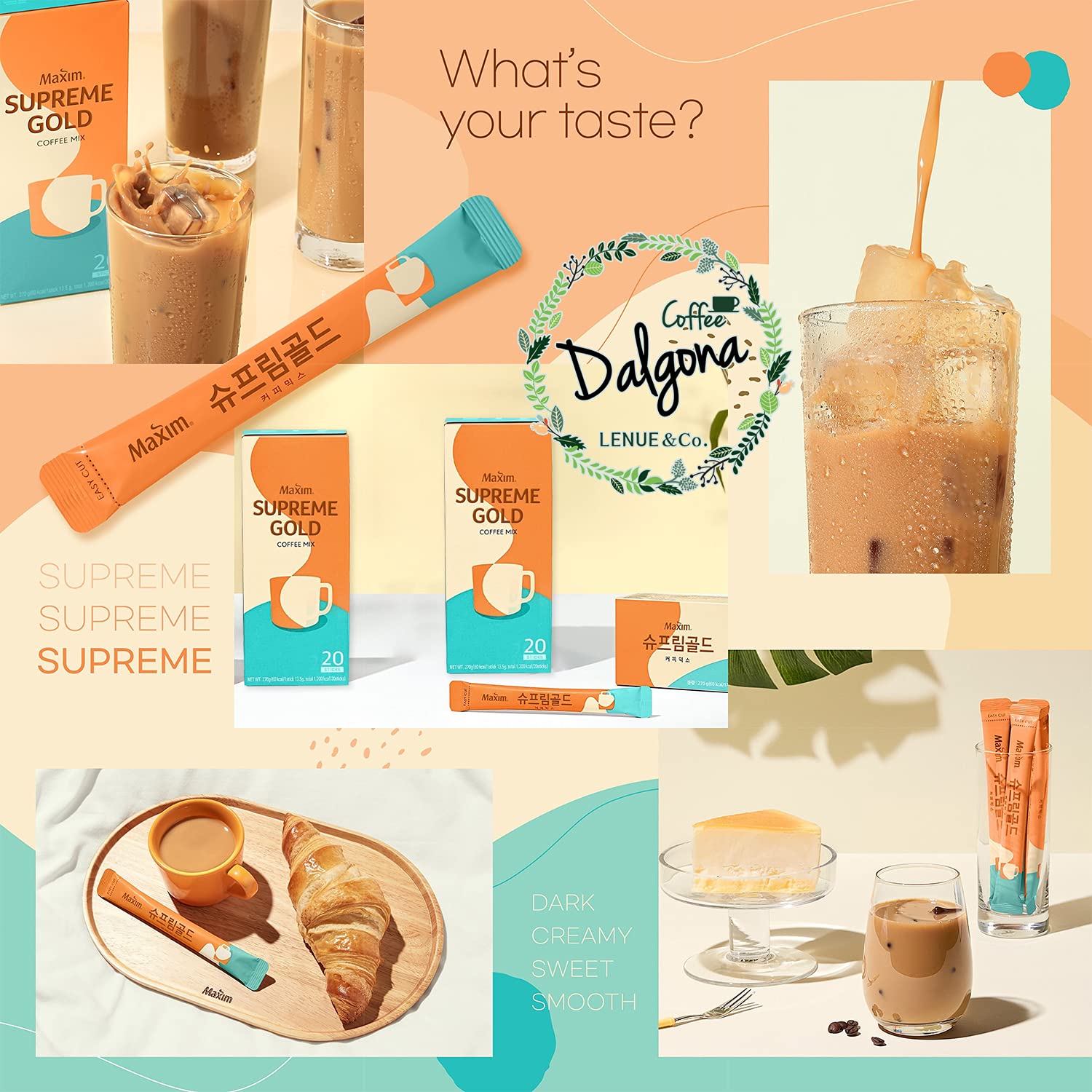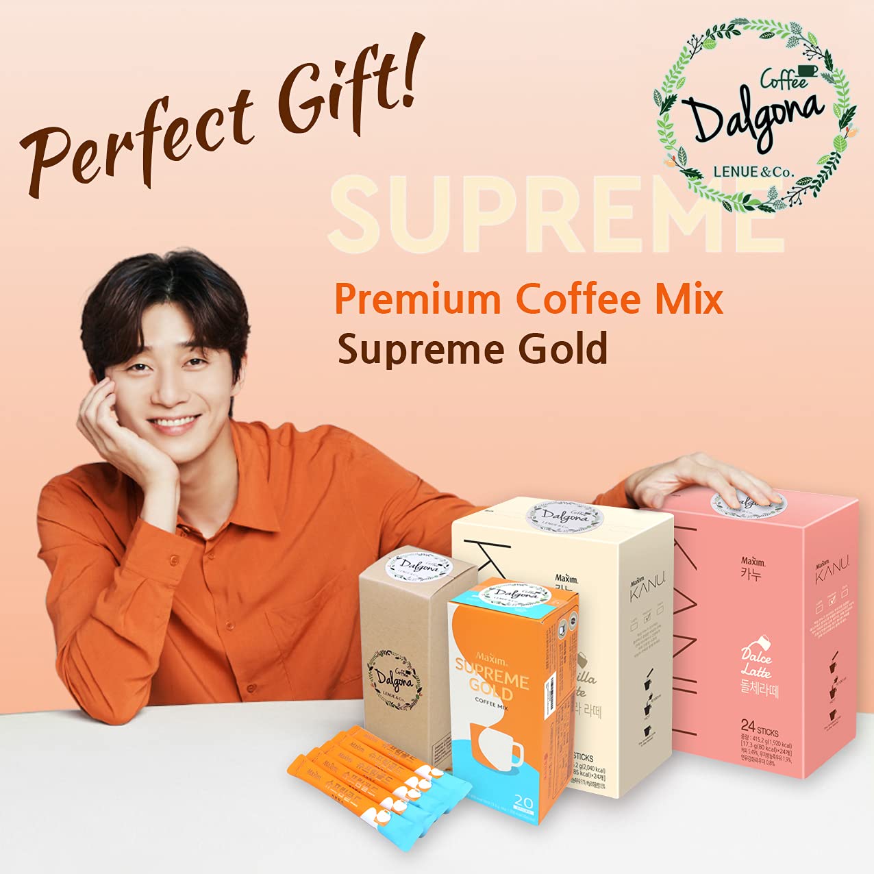 π LENUEβs Maxim Supreme Gold Latte set : Korean Maximβs 3 in 1 Coffee Latte mix 18 Sticks, Product of Korea, Expiration: At least 6 months(yyyy/mm/dd)