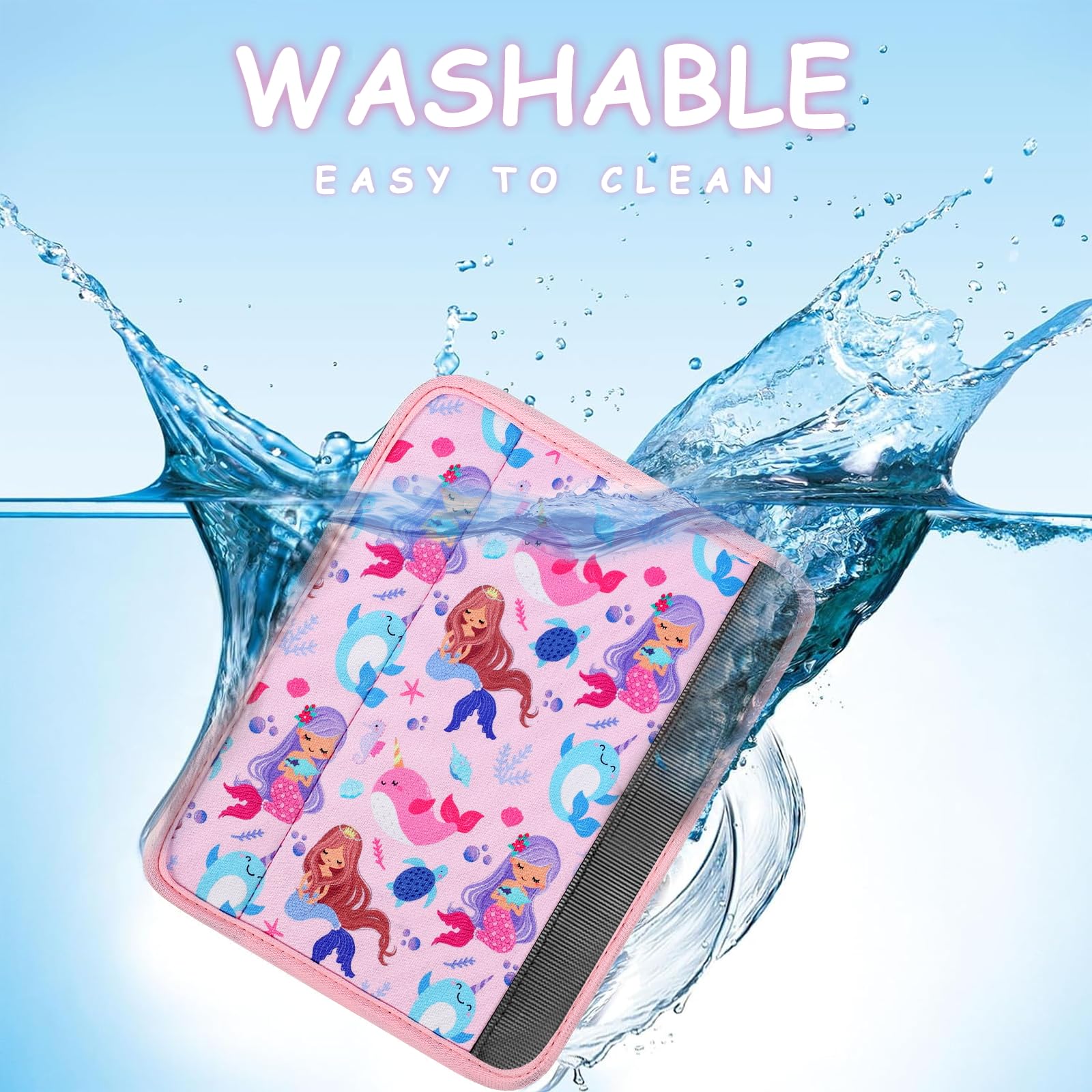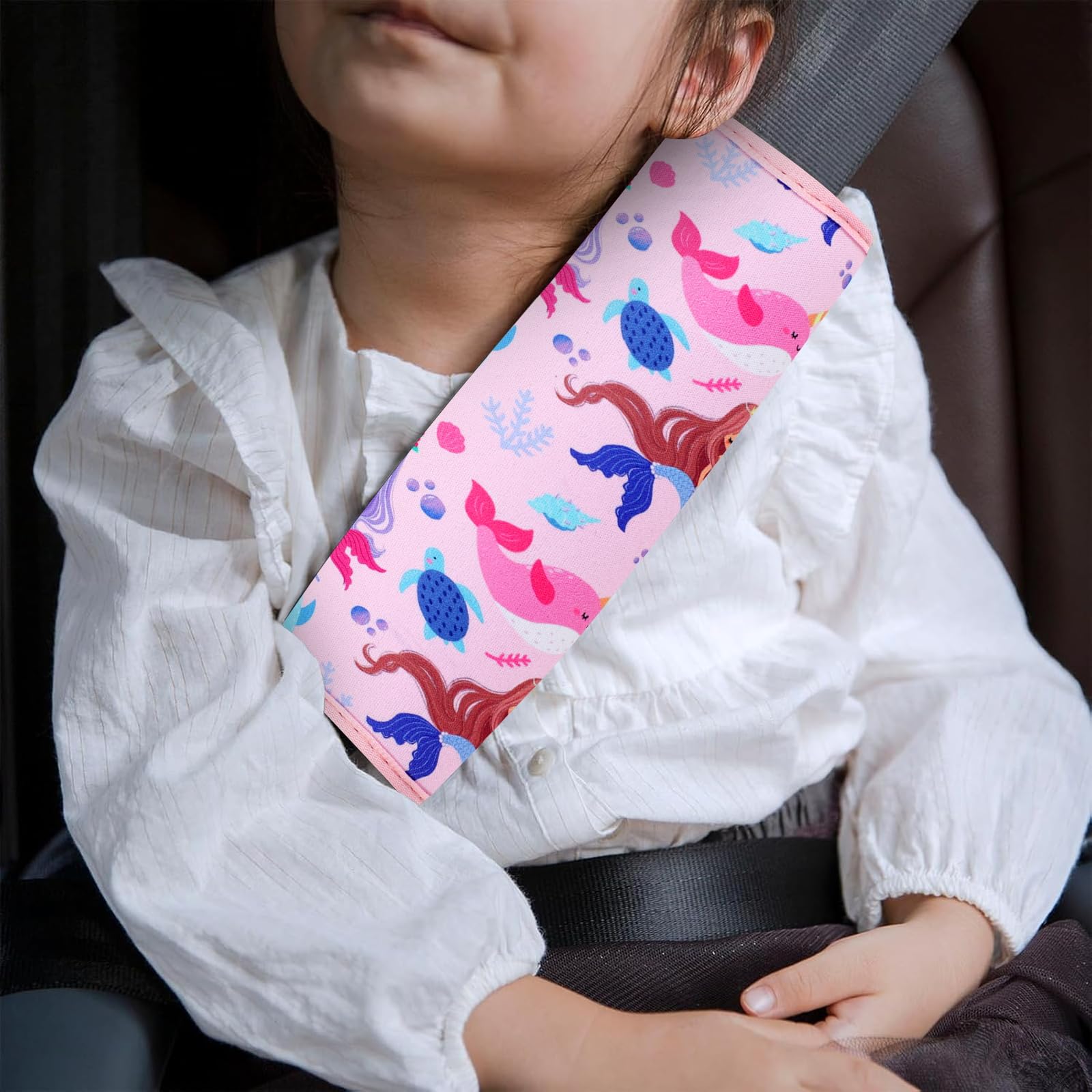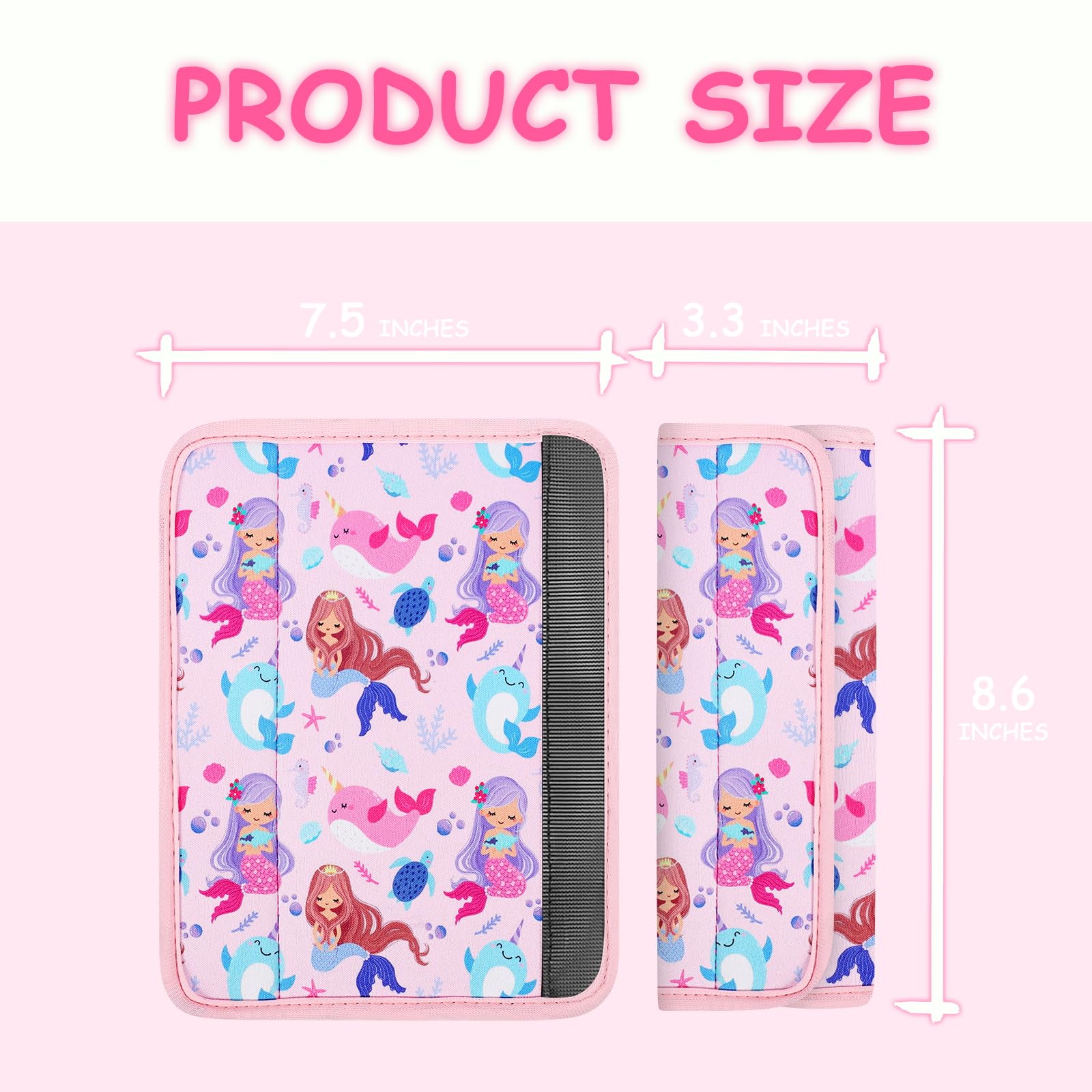 SPECIFICATION: Weight: 33g Material: Neoprene Pattern: Mermaid, Unicorn, Dinosaur, Astronaut Product Dimensions: 8.6 X 7.5 X 0.2 Inches (Expanded) Adjustable Width: About 2.5~3 Inches Washable: MachineWash, Hand Wash Package Included: 1 X Kids Car Seat Belt Cover PRODUCT FEATURES: Washable Easy to install Design for kids Made of high-quality soft neoprene Good sweat absorption and stretchy Superior comfortand protection from chafing Super cute cartoon design