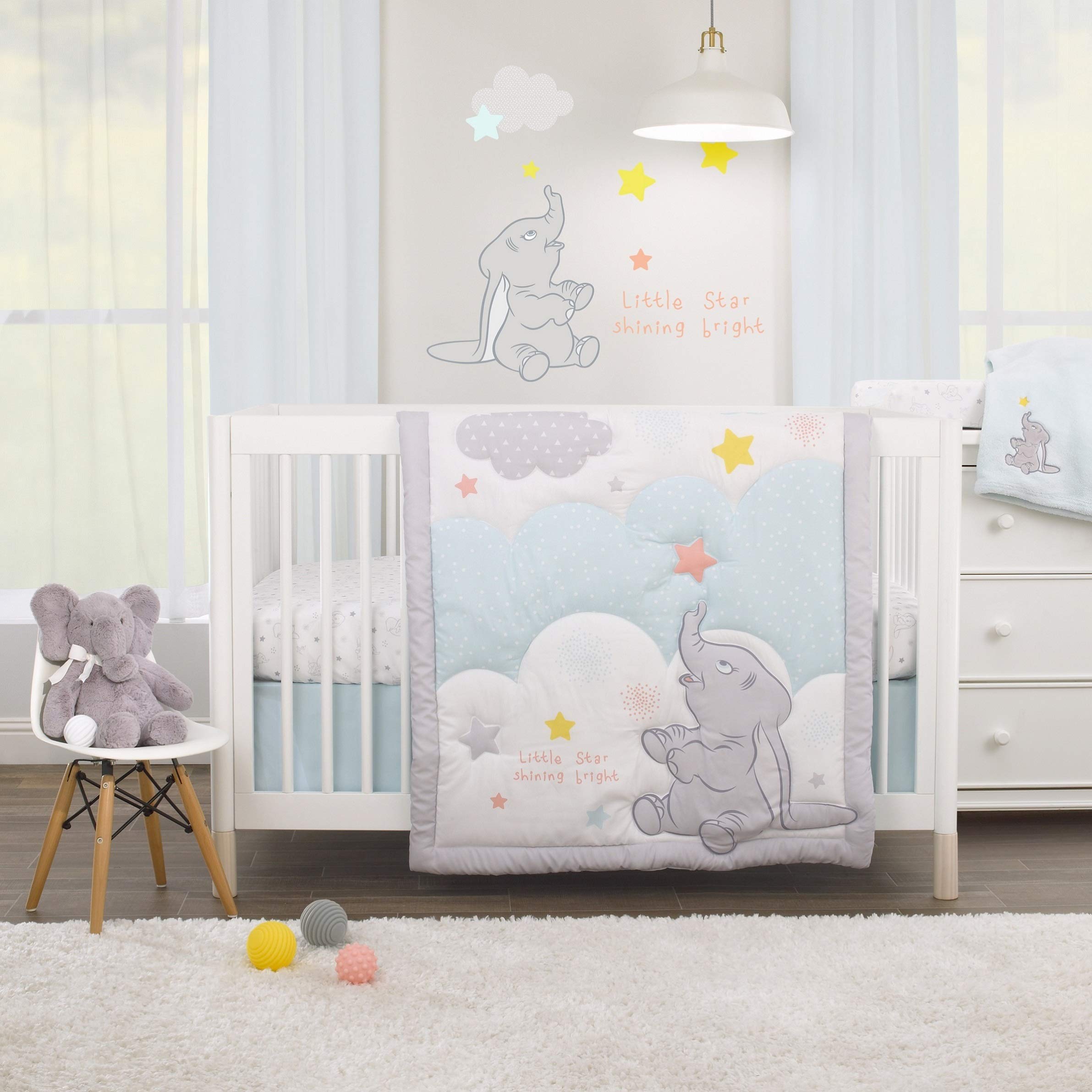 Your little one will sleep soundly on this crib sheet's cozy surface and cute Dumbo design. Shades of grey and white make this 100% polyester microfiber Fitted Crib Sheet perfect for almost any nursery. Measures 52 x 28 x 8" With elastic all the way around for a perfectly snug fit on any standard size crib mattress. Perfect for cute everyday photo ops!