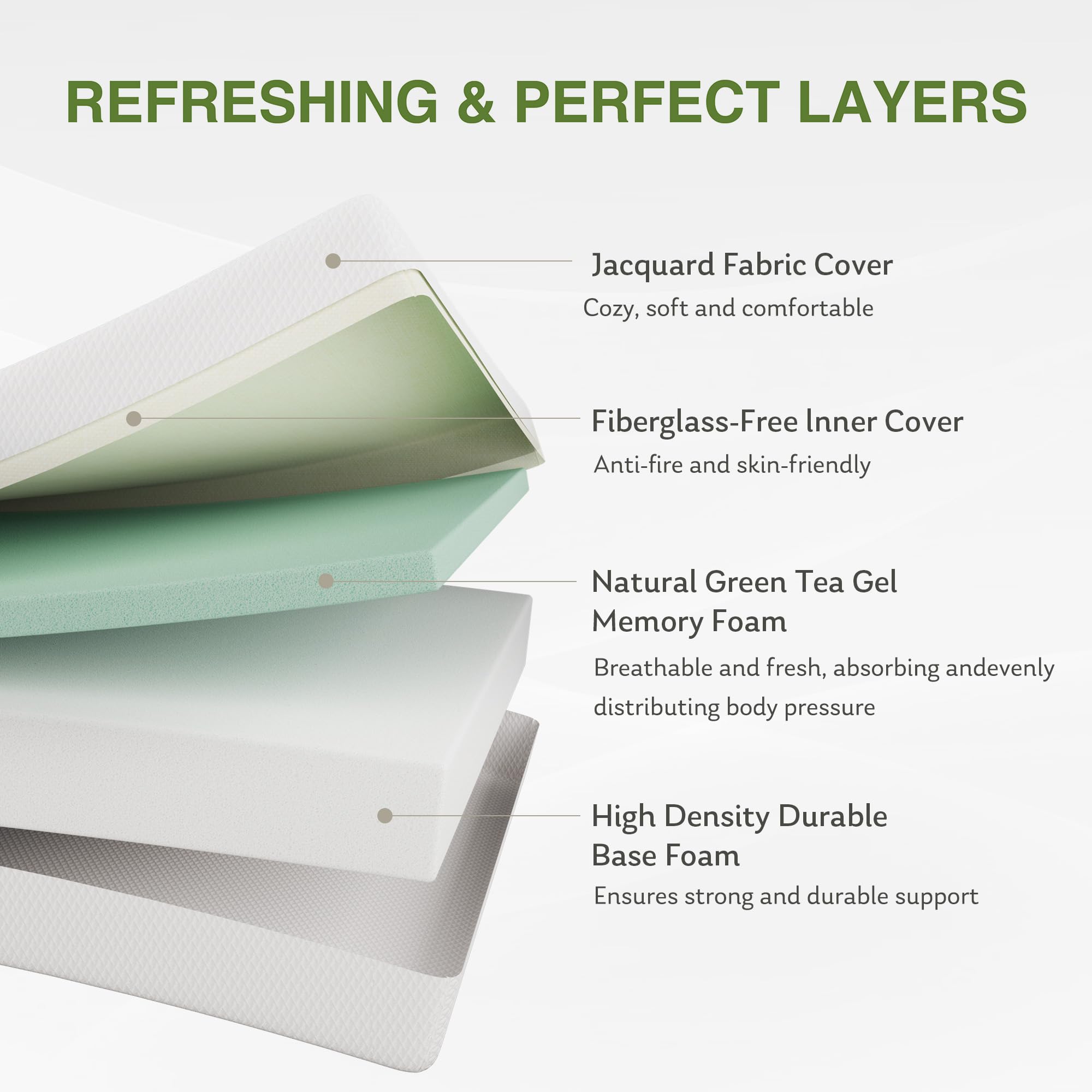 Refreshing Cool Sensation: The process we use makes the mattress have a special bubble hole structure, which has good breathable airflow to keep a peaceful sleep. We also infuse it with pure natural green tea gel, which helps regulate body temperature and keeps body cool and fresh.