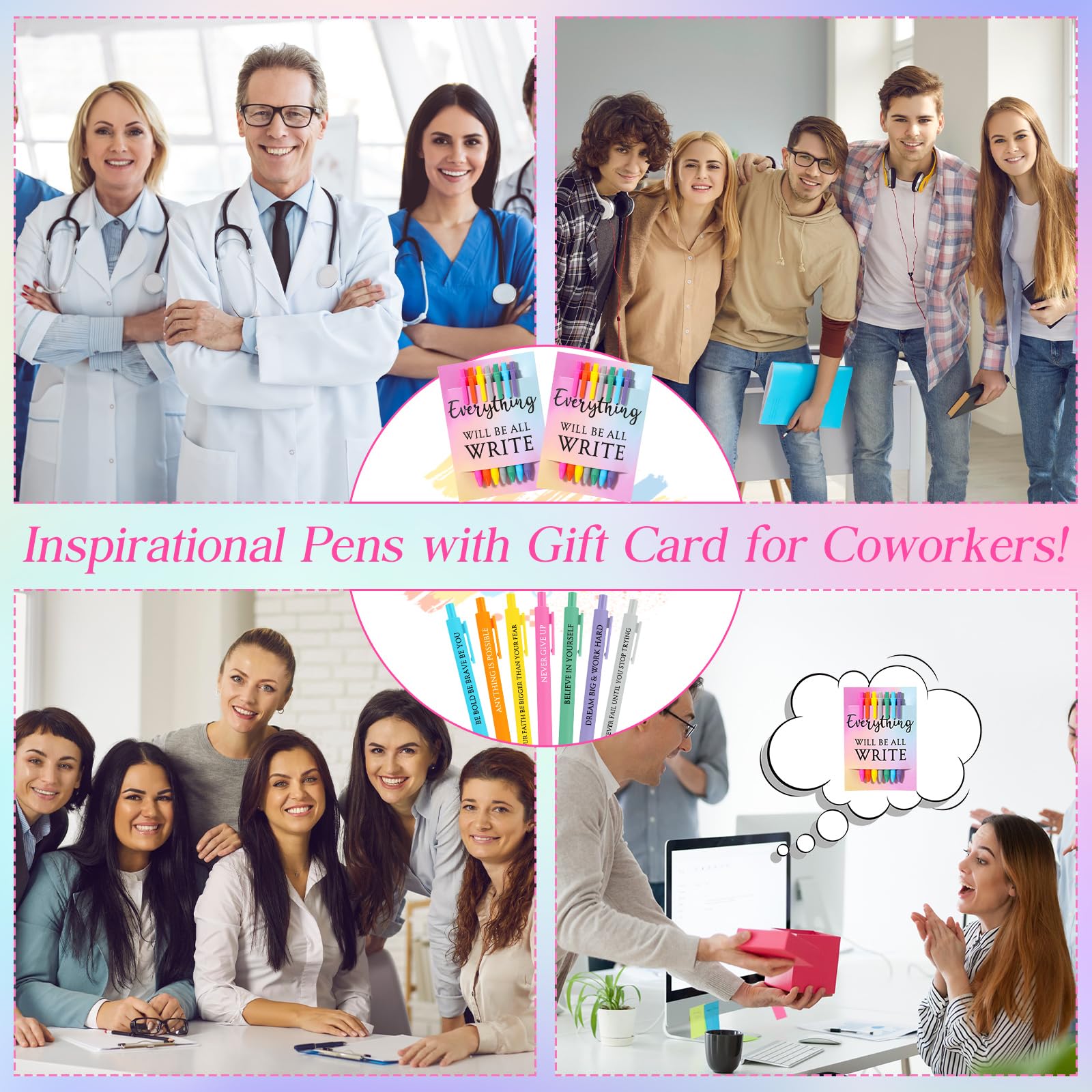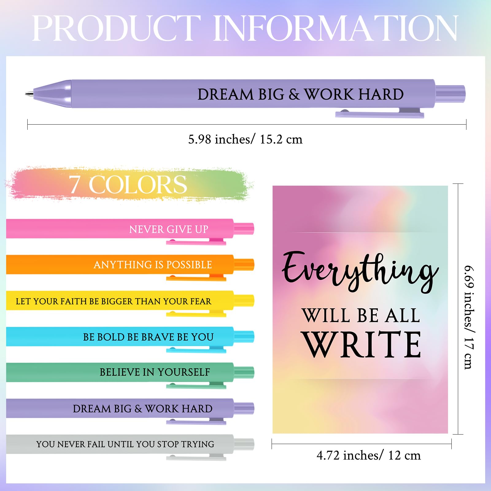 Inspirational Employee Appreciation Gift: each package includes 7 inspirational pens made of quality plastic that ensures durability, as well as 1 inspirational gift card crafted of 250g coated paper, which is the proper gift set
