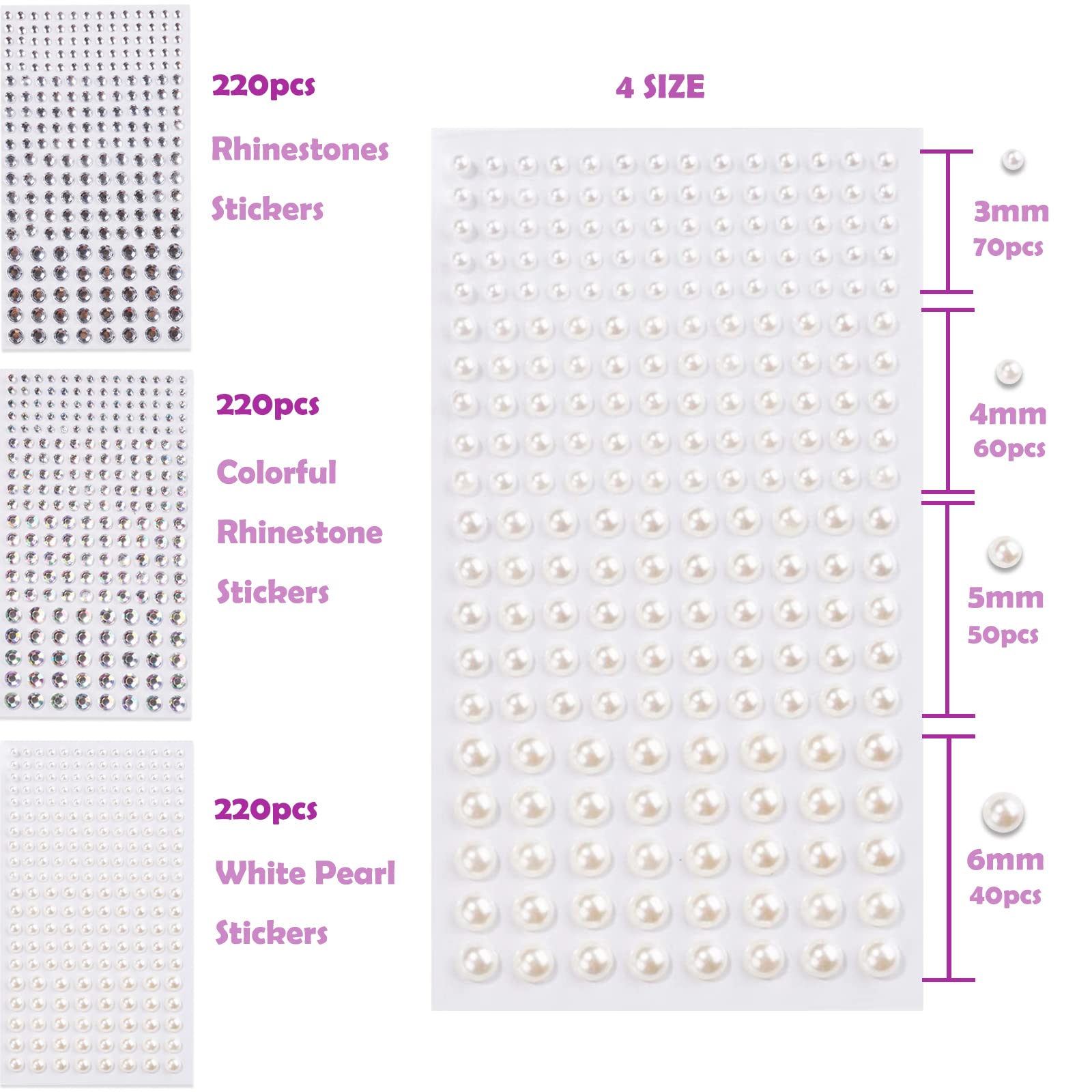 💎【Package Included】: Face jewels for makeup- 3 sheet, a total of 660pcs PEAL face rhinestones with 4 sizes(3/4/5/6mm);And a mint green tweezers.