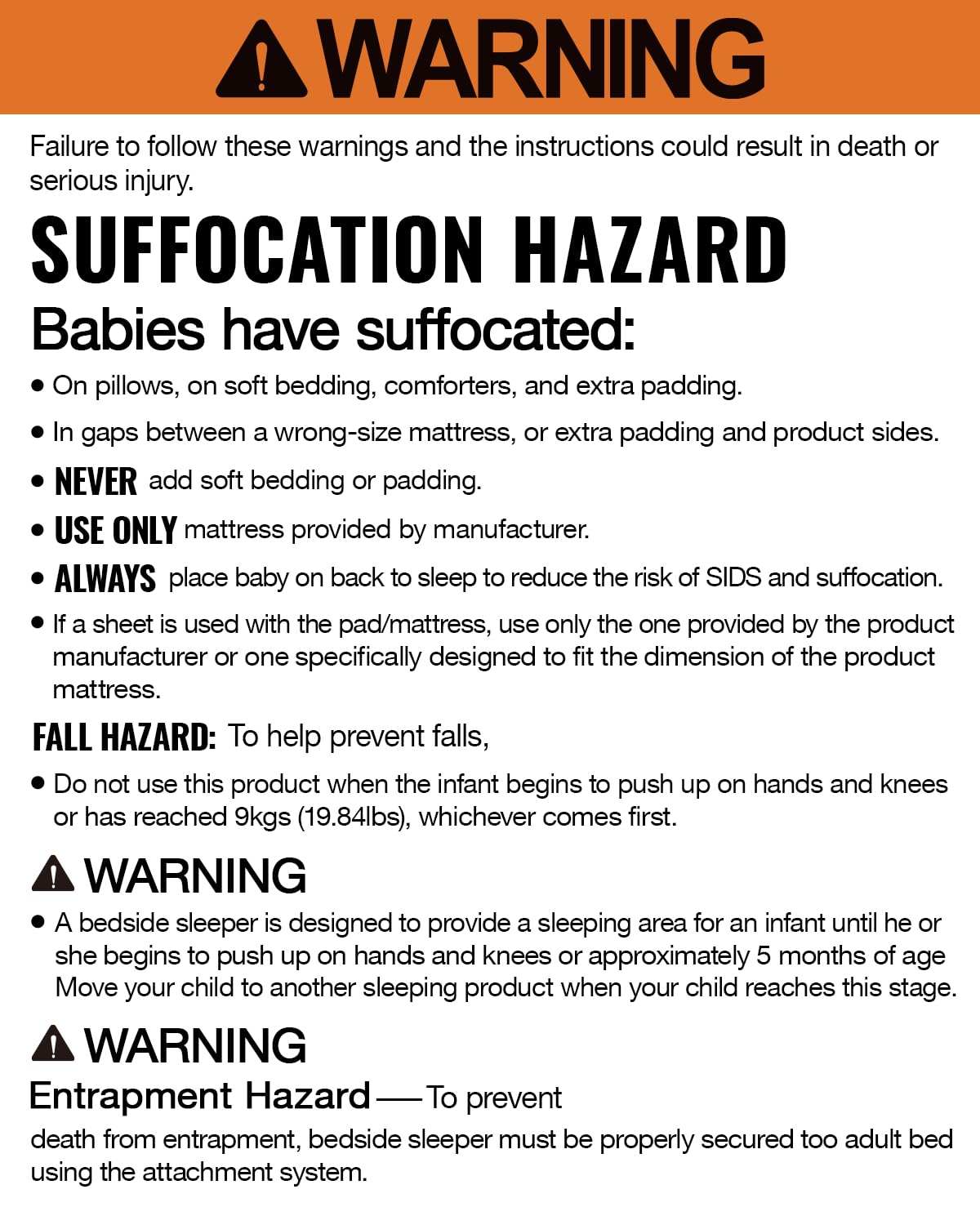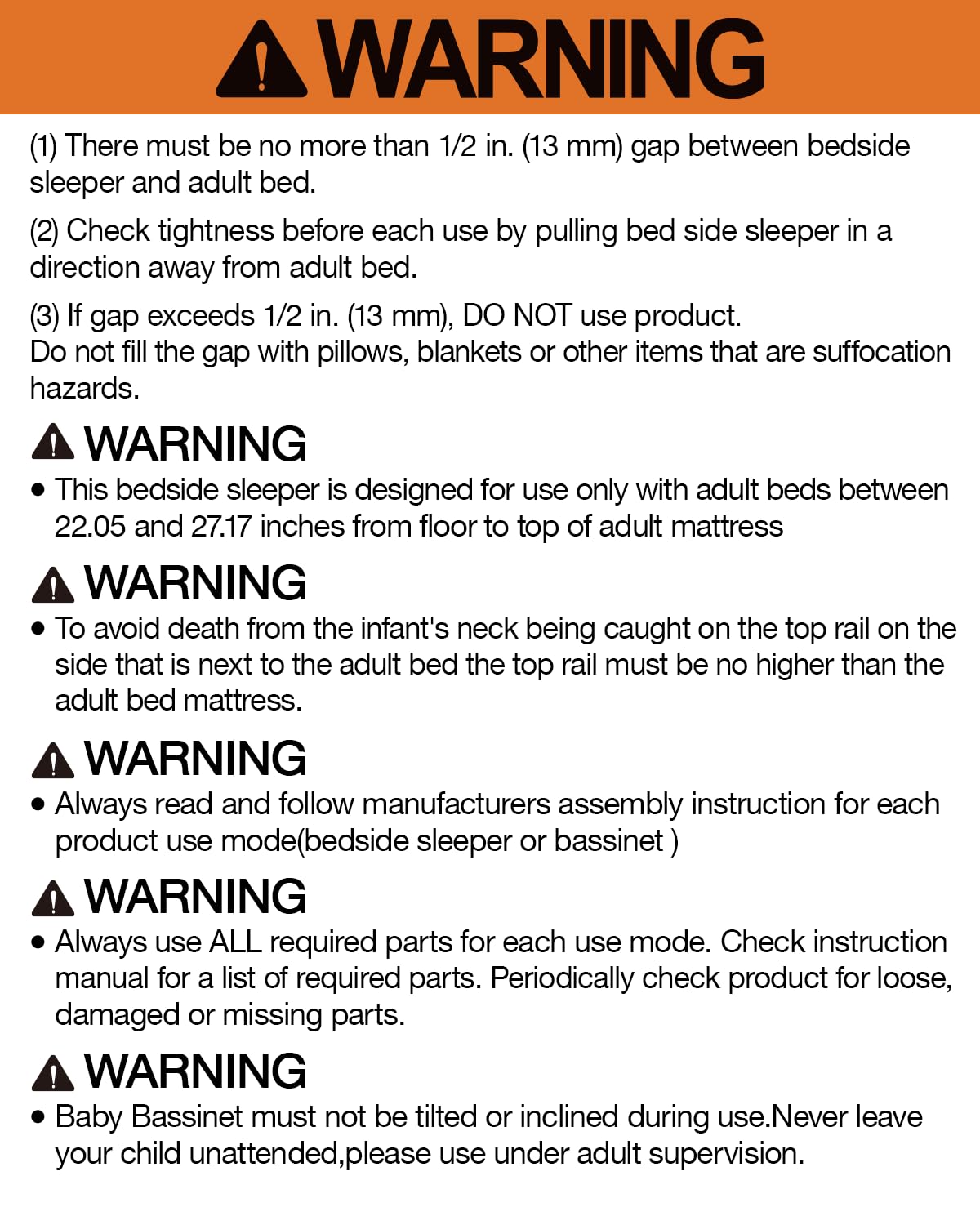 Safe and Stable Frame: The baby bedside sleeper is made of painted iron and reinforced construction, undergoing strict testing standards. It can be assembled or disassembled in a few minutes.Baby Bassinet must not be tilted or inclined during use.Never leave your child unattended,please use under adult supervision.