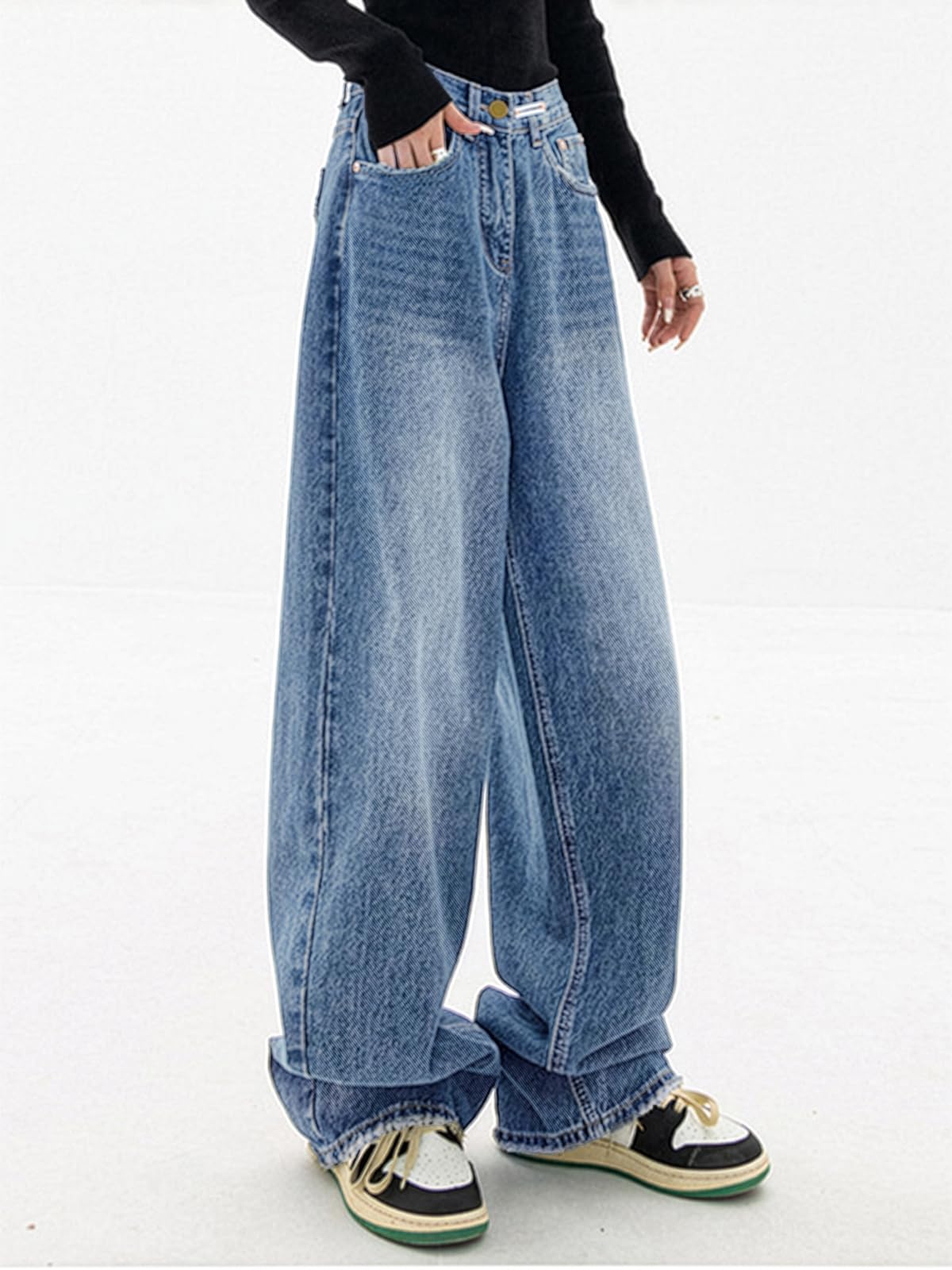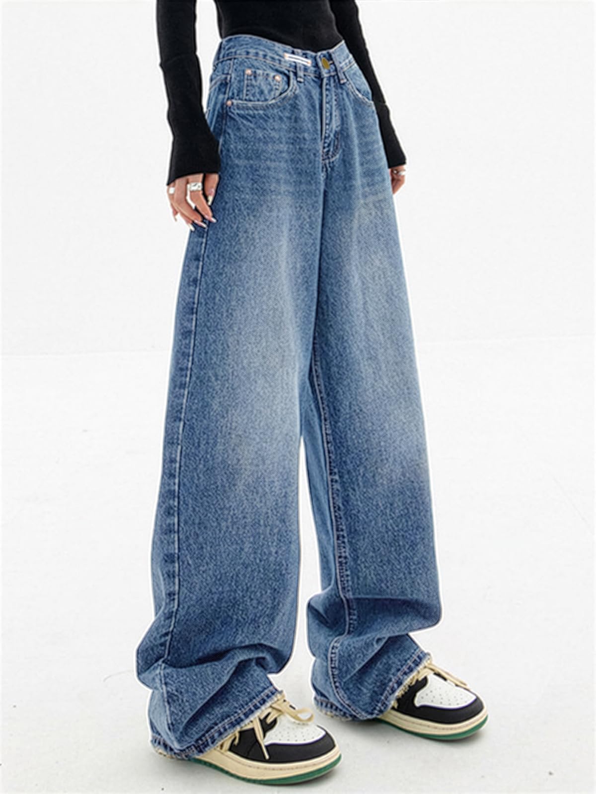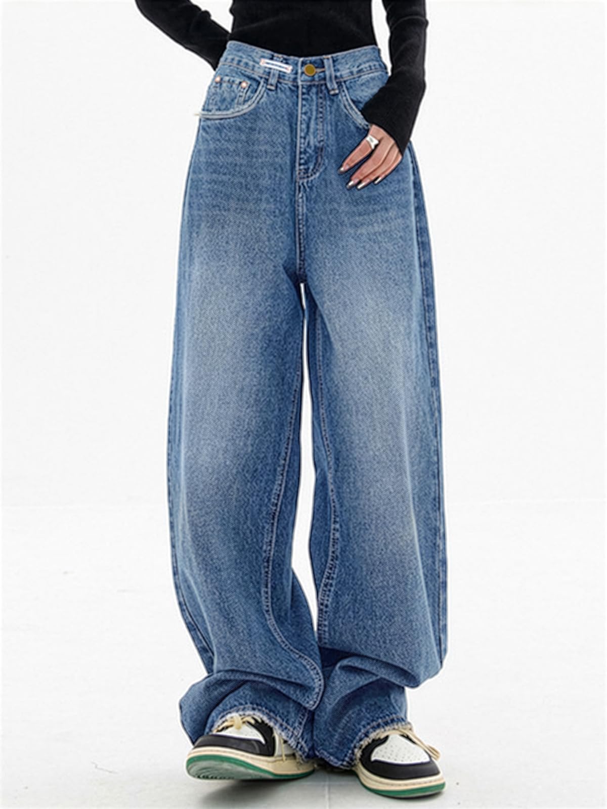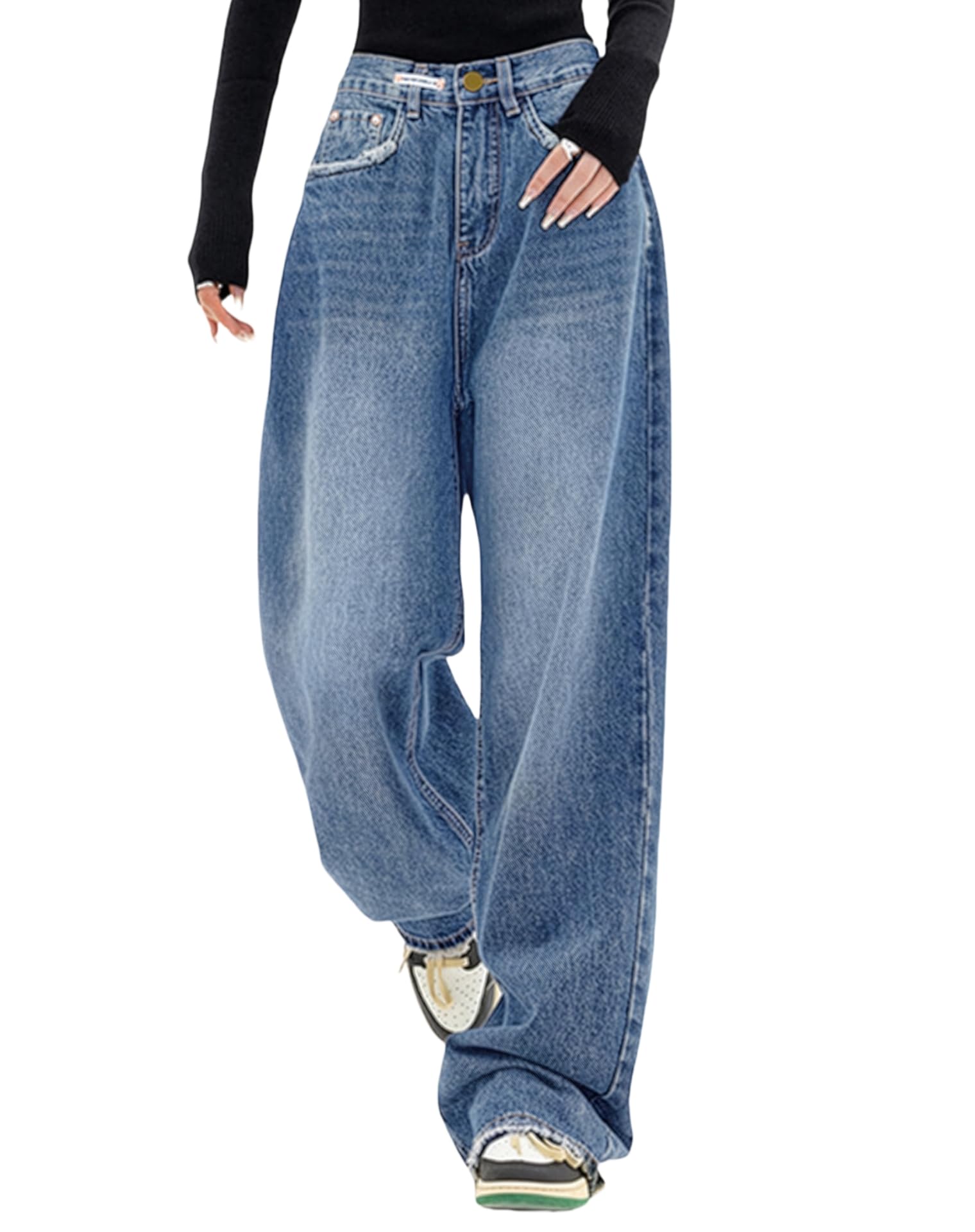 Boyfriend jeans for women come with 4 traditional pockets. Intentionally distressed design in the pockets' edges, providing these women's jeans with both style and function. Y2k baggy jeans with zip fly, button closure and belt loops for your ease of use.