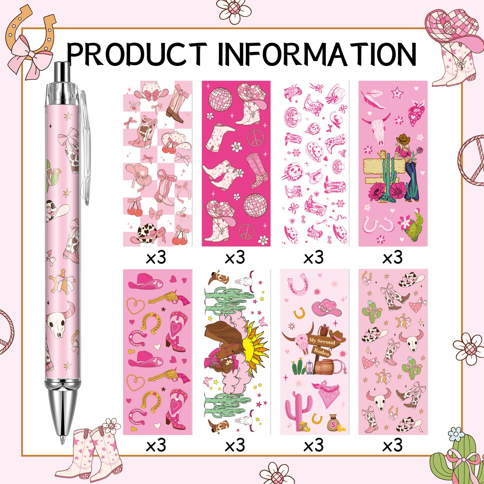 Variety of Styles: These ballpoint pens are adorned with a fun western cowgirl pattern, giving them a playful and unique look, and they come in 8 different styles, with 3 pcs of each style, for a total of 24 pcs. They are perfectly suited to meet the needs of consumers on all occasions