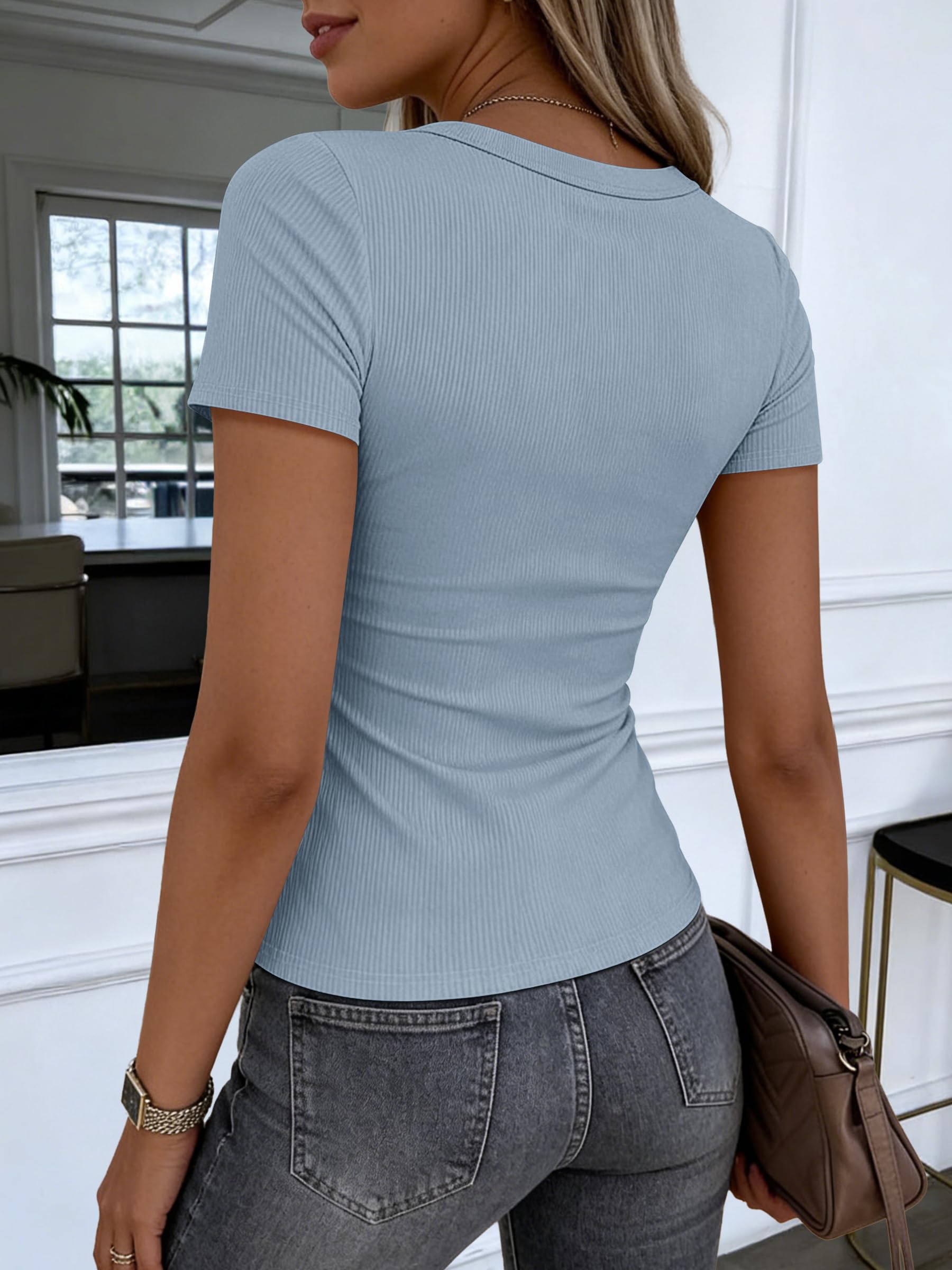 Features - Women's summer T shirt,V neck,short sleeves.This women's summer T shirt top perfect for daily wear, work, office, business.