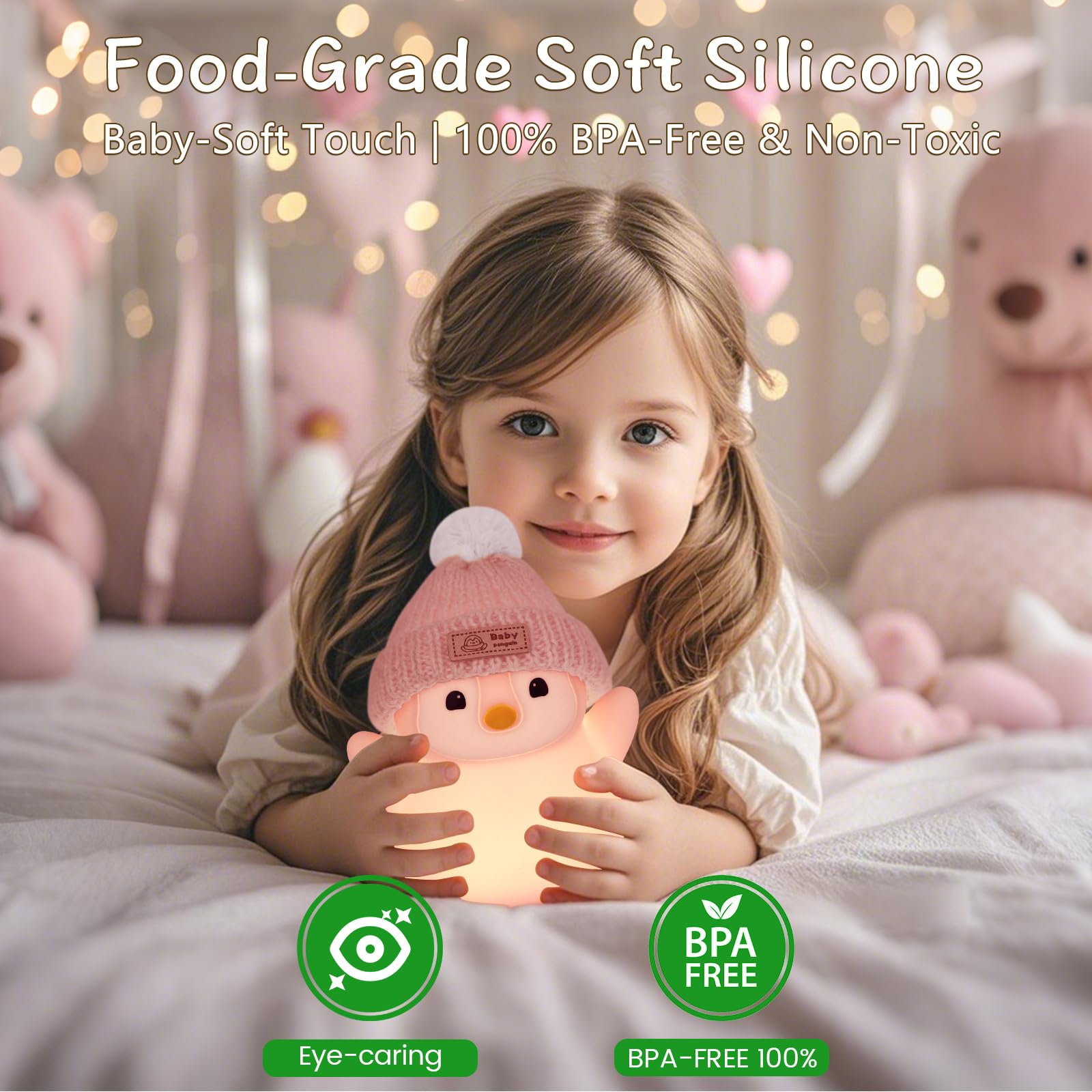Ultra-Squishy/Safe Food Grade Silicone Material: FAMIDUO penguin silicone night light made from premium squishy soft silicone, this pink penguin small lamp is 100% BPA-free and non-toxic, passed international safety certification (CE/FCC/CPC),perfect for kids/baby/pregnant women. Its squishy texture provides a calming sensory experience, doubling as a stress-relief toy.