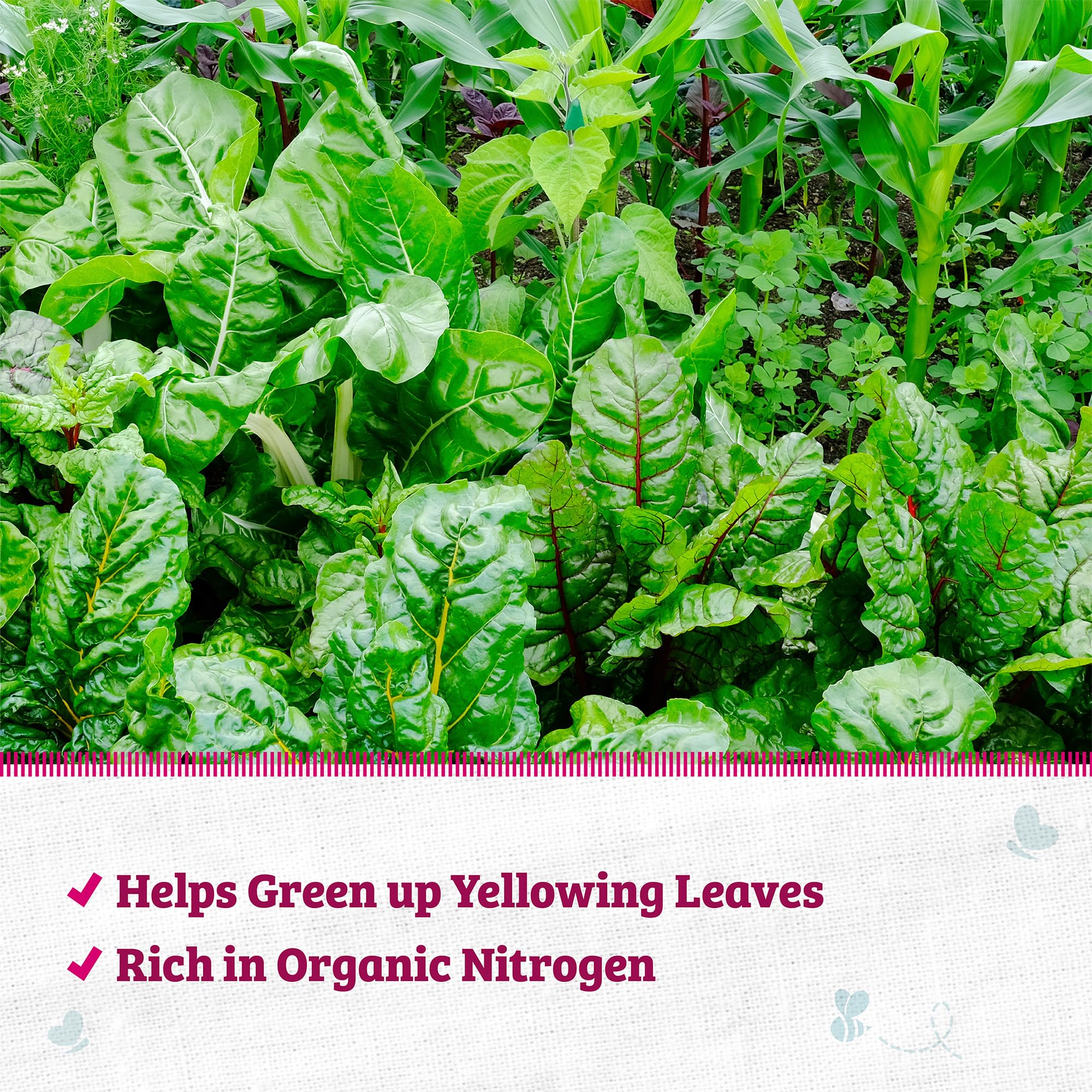 Rich in Organic Nitrogen to Promote Lush Growth & Vibrant Color. Helps Green Up Nitrogen-Deficient Leaves.