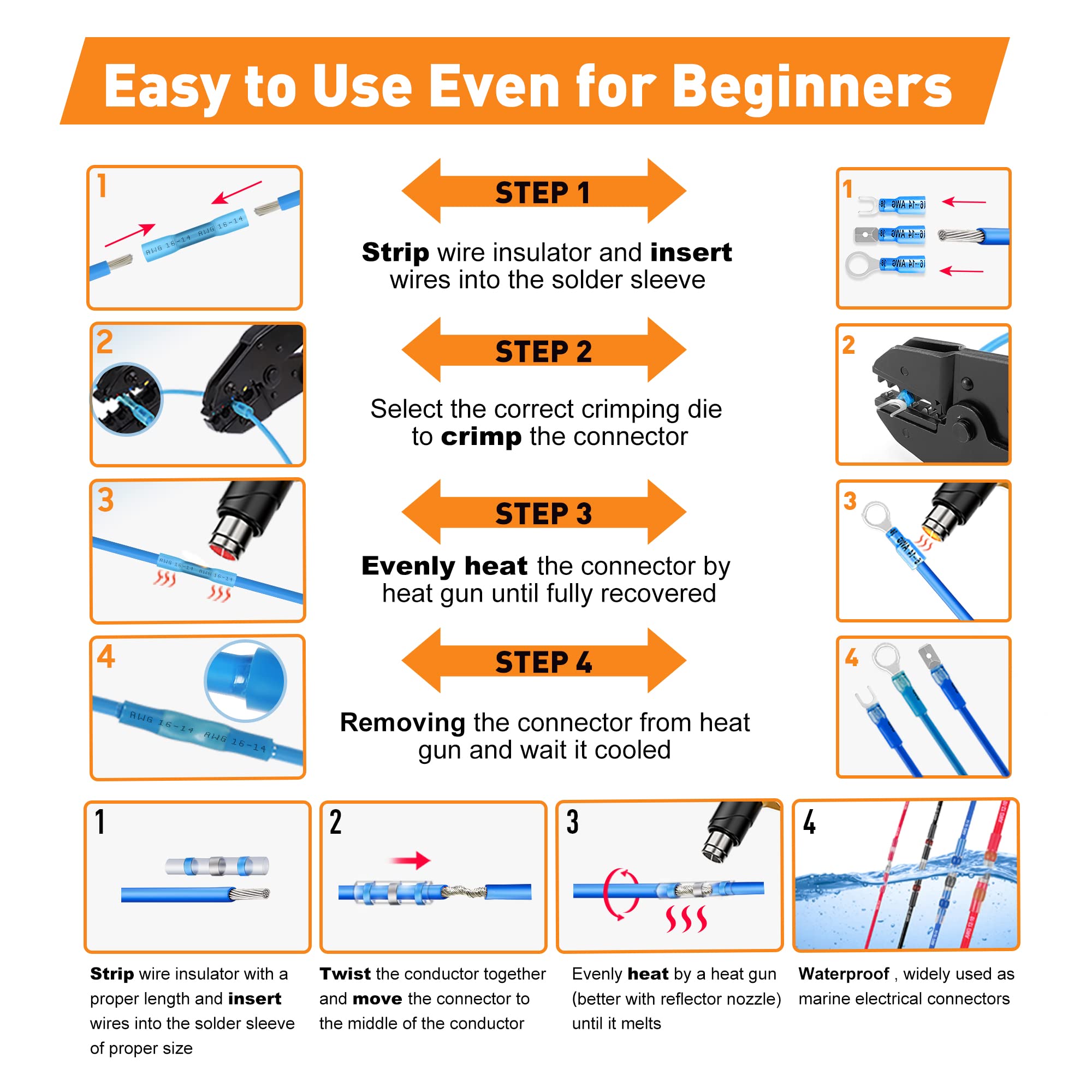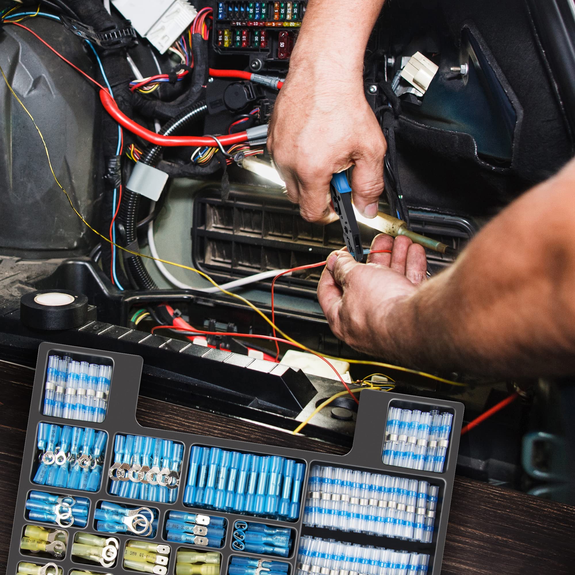 【Portable and Organized】These heat shrink wire connectors are packaged in an advanced box with a handle and removable organizer, which can provide a convenient move and organized electrical wire connectors as weill as butt splice connectors for you.