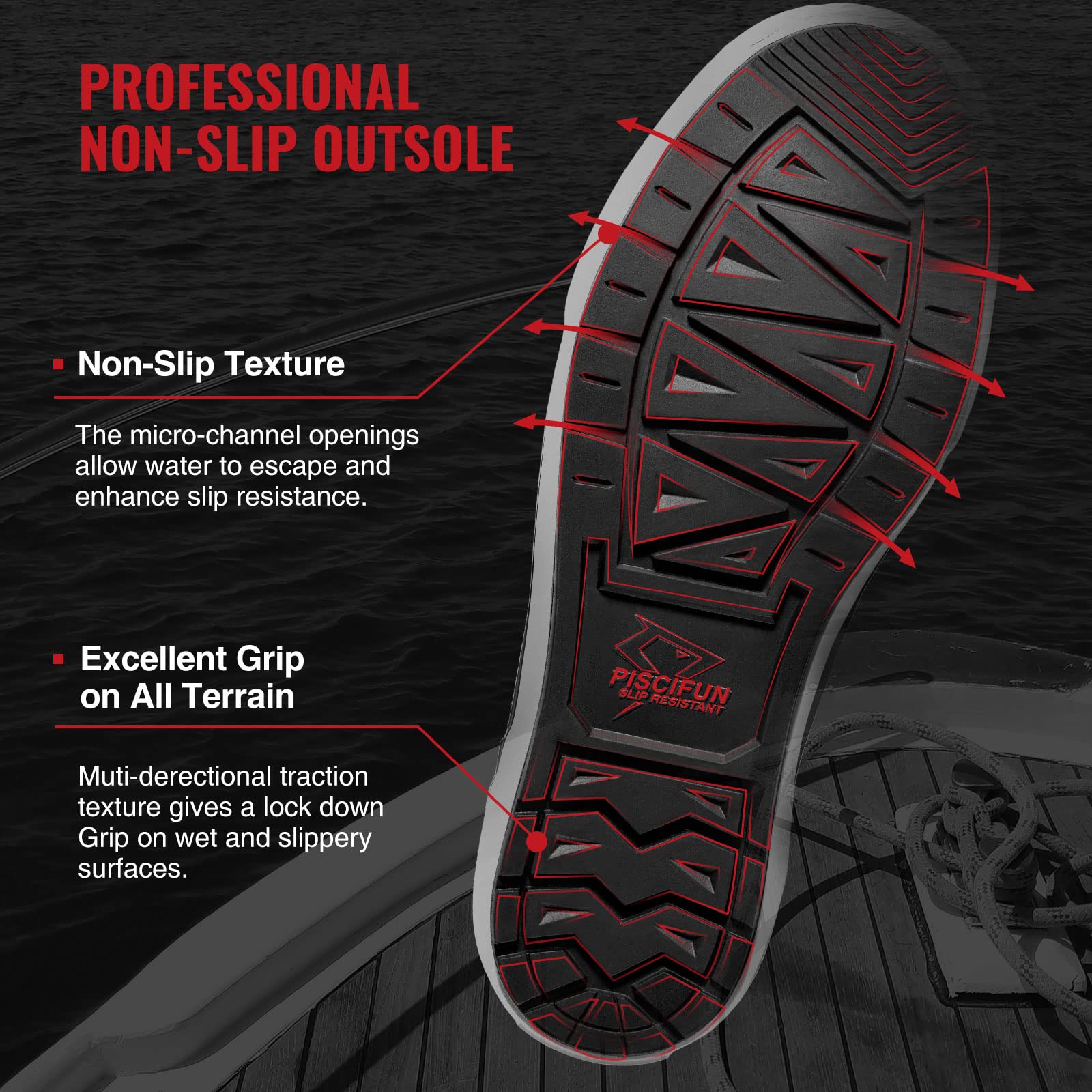 Professional Non-slip Design - The traction texture design on the sole of the boat boot gives amazing grip on wet and slippery surfaces. The micro-channel openings on the outsole allow water to drain away, helping to avoid slips and falls