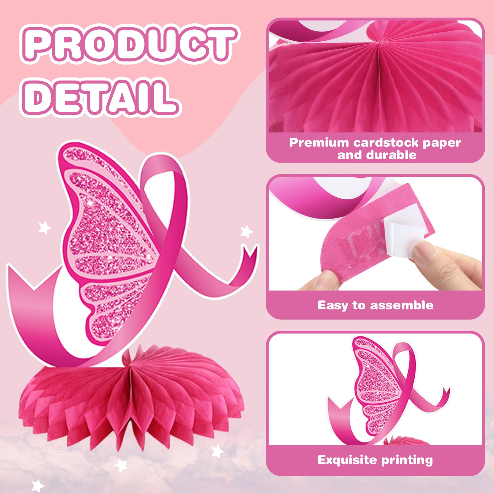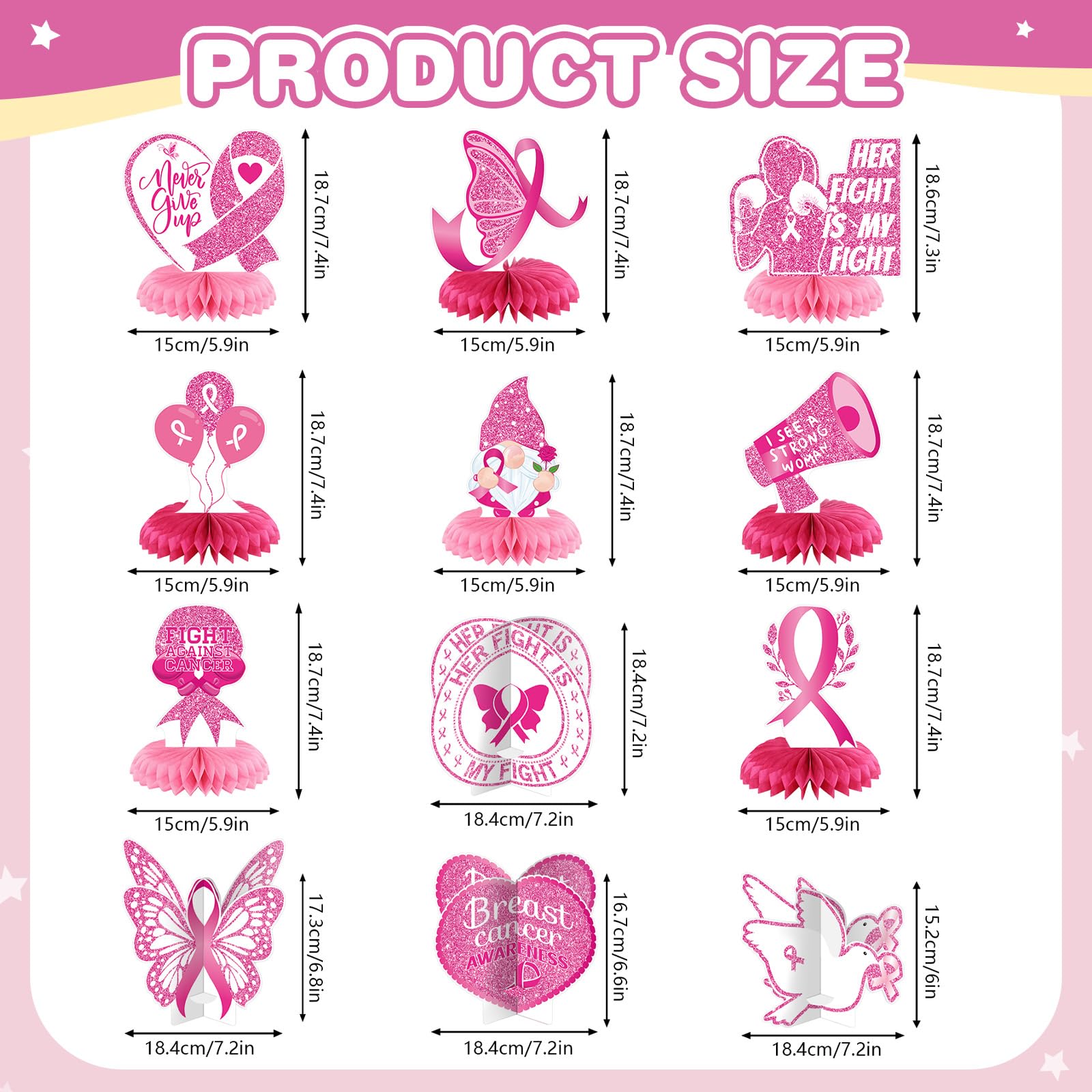 Packaging Information: there are 12 pieces breast cancer awareness honeycomb centerpiece, including pink ribbon, butterfly, heart, etc. Whether you are holding a small party or a large party, our packaging can ensure that the corner of your activity place is covered to enhance the atmosphere