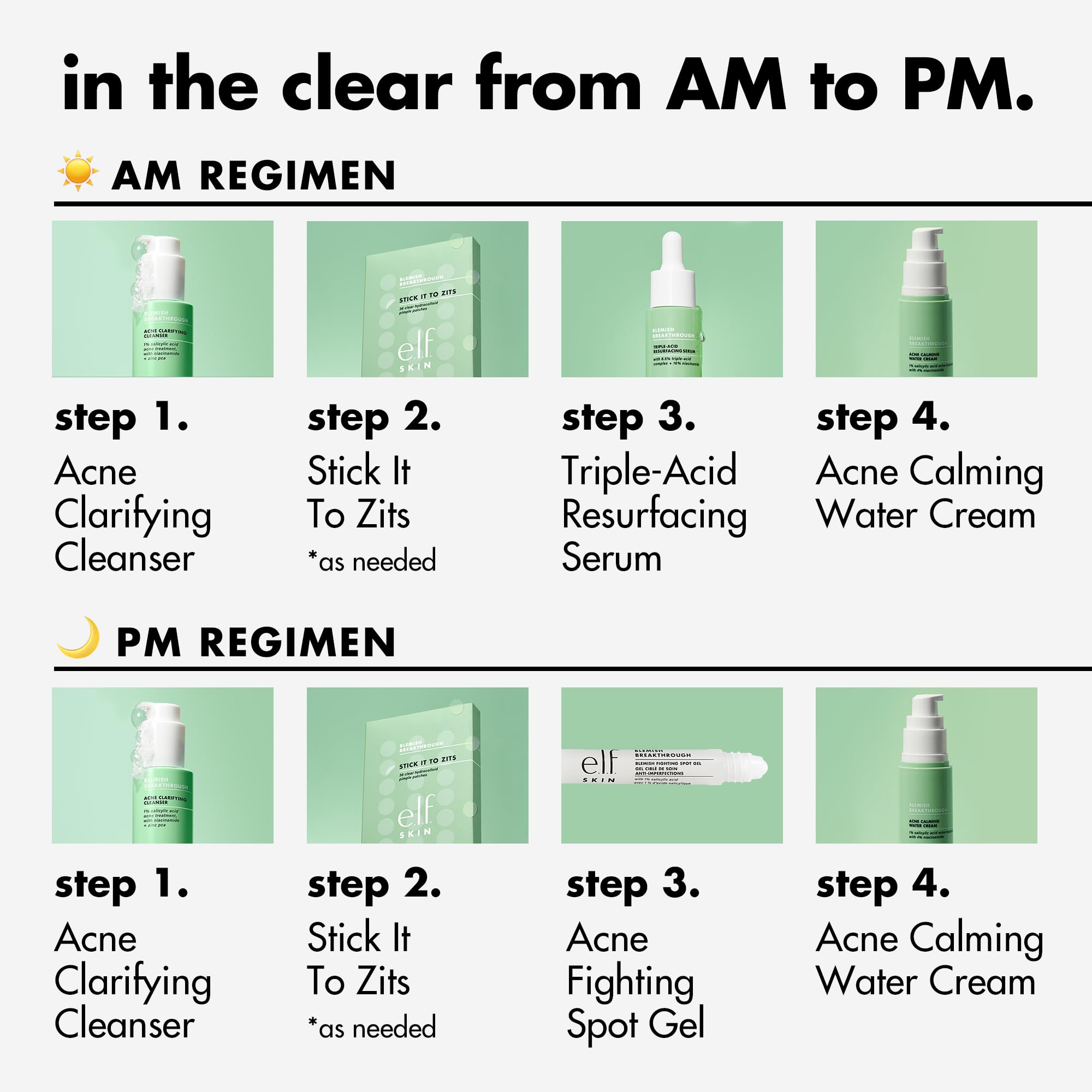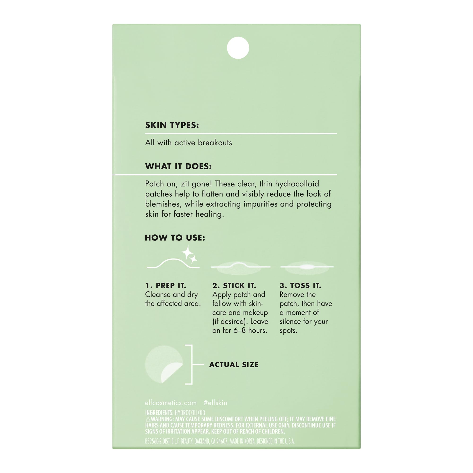 EFFECTIVE PIMPLE PATCHES: Patch on, zit gone! e.l.f. SKIN’s Blemish Breakthrough Stick It to Zits Pimple Patches help to flatten active breakouts, visibly reduce the appearance of blemishes and extract impurities—on the spot.
