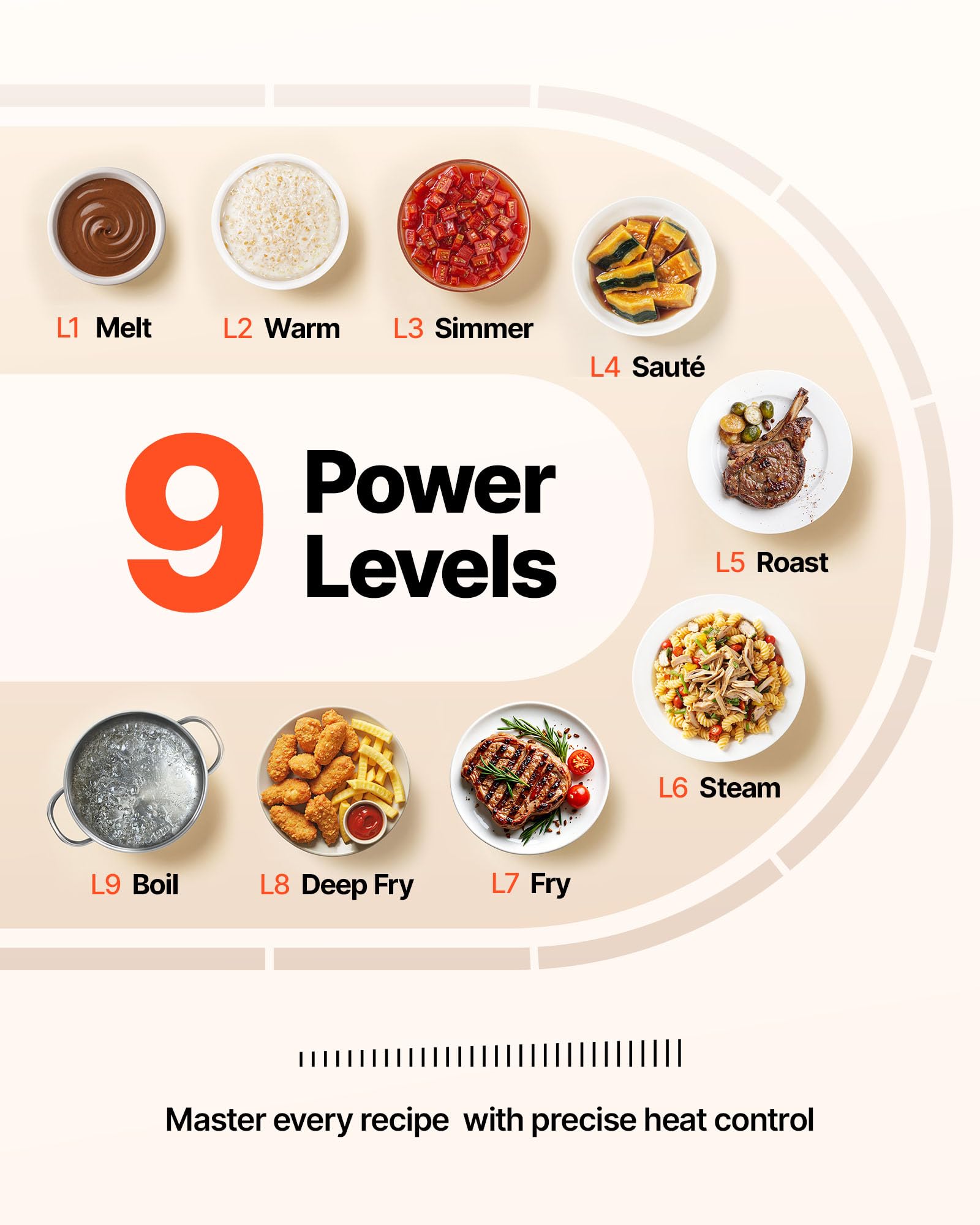 Multiple Safeguard Functions: This electric stovetop contains various functions for enhanced security. The child security lock avoids accidental touching, while the overheat protection and auto shut-off function keep you from unexpected dangers. No high-frequency radiation allows you to use it with confidence. In addition, when high heat remains on the surface, the residual heat reminder will indicate you, averting hand scald during cleaning. The fan needs to work for a period of time to cool down after the cooker is turned off.