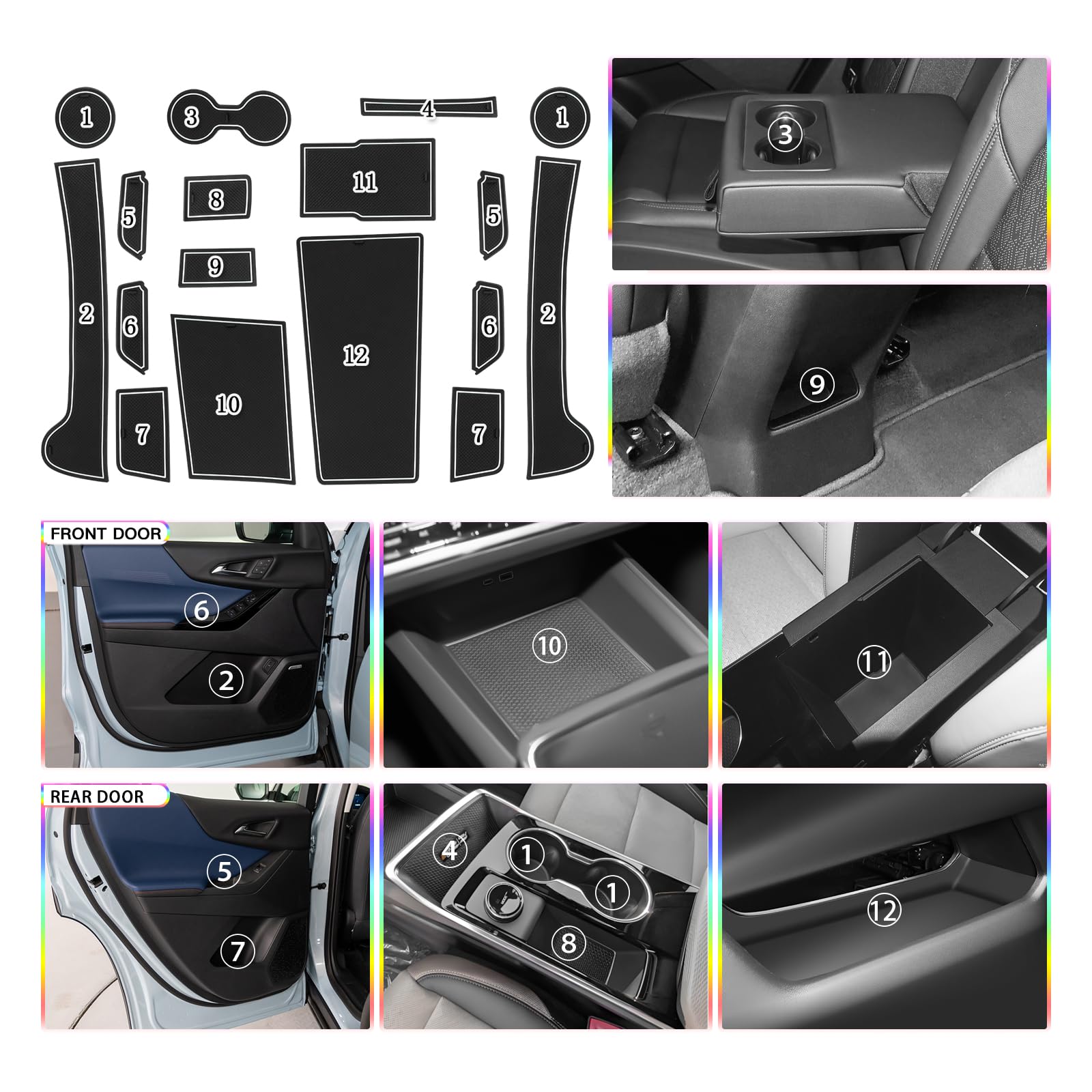 Compatible with 2025 2026 Chevy Equinox (LT/Activ/RS) SUV Door Cup Arm Box Storage Mat Pad