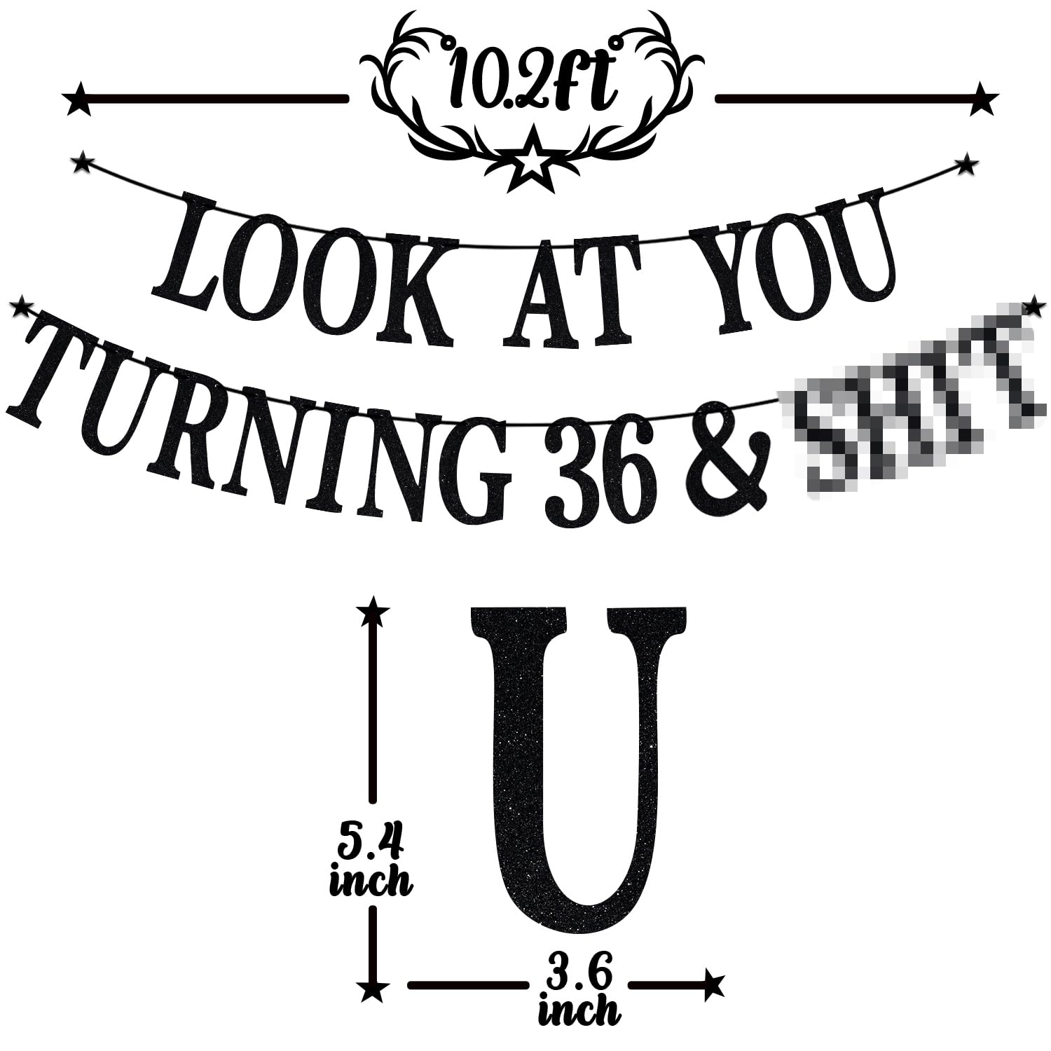 Received included: Letter cards spelling the phrase "Look at You Turning 36 & Sh*t". Awesome decorations: It is very suitable for the 36th Birthday party. Special party decorations can add an enjoyable and active atmosphere to these scenes, leaving a happy and unforgettable memory. High quality: Banners are made of glitter premium cardpaper. They are rigid and reusable. Easy to DIY: The card and the rope are separate, you only need to spend a little time to assemble. Choose us and believe us: We support the concept of customer first and product first. If the quality or damage occurs during transportation, we will solve it.