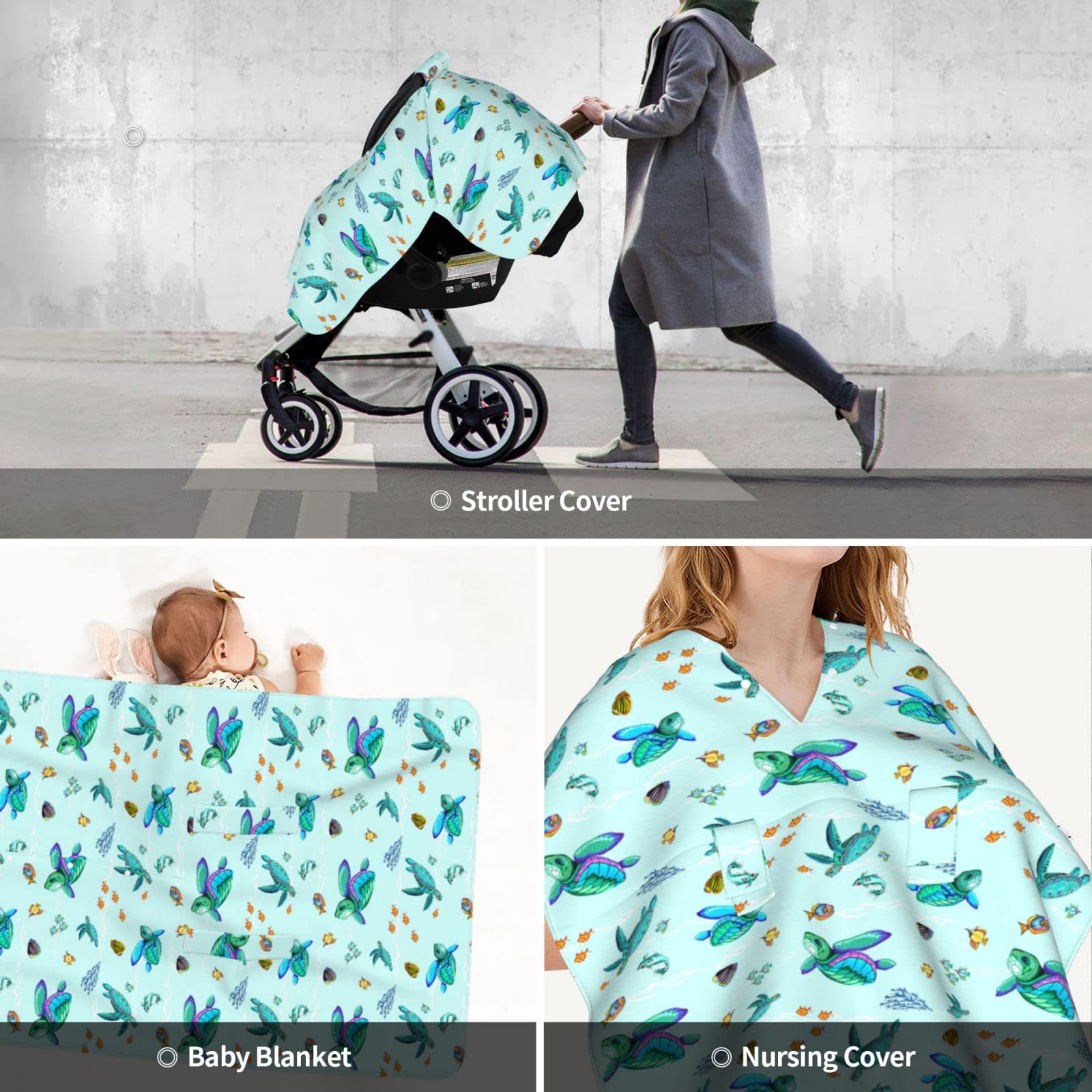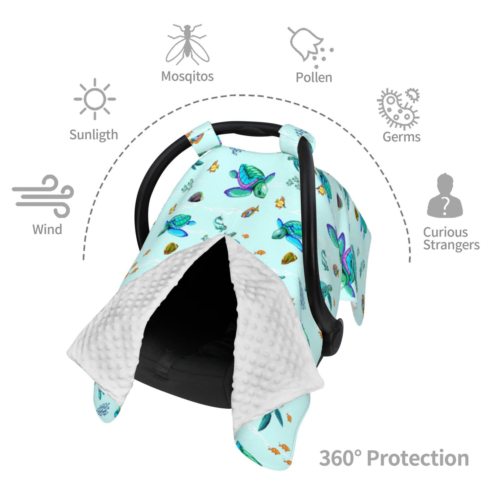 ★ Turtle Baby Stuff: The ultra soft plush fabric with cute pattern, we ensure that baby's mom will love this car seat canopy. It's an cute baby shower stuff, birthday, and daily stuff.