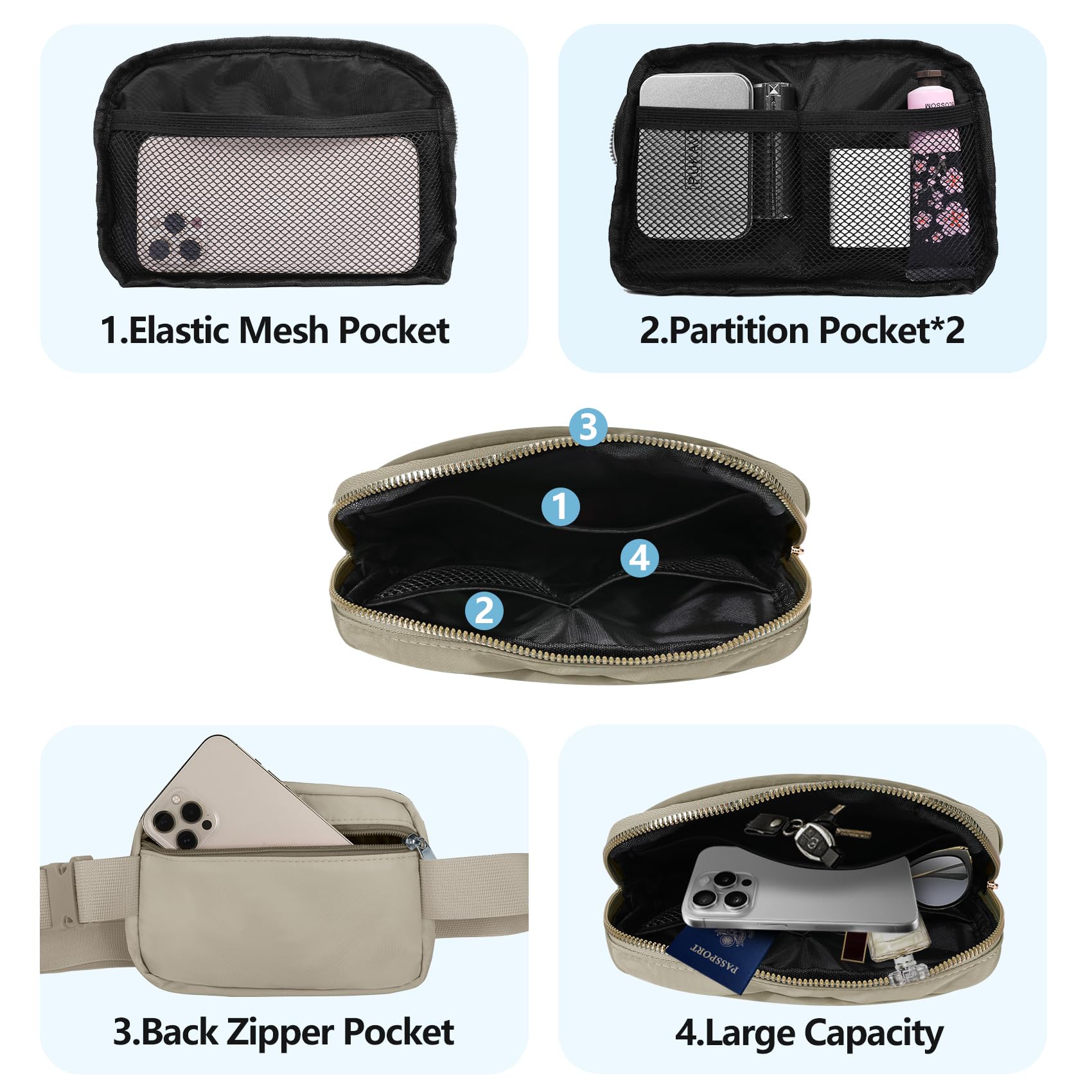Large Capacity:Spacious main pocket and back pocket with zipper closures keep all of your essentials secure. You can put key, cosmetics, mobile phones and other items in this waist pack.