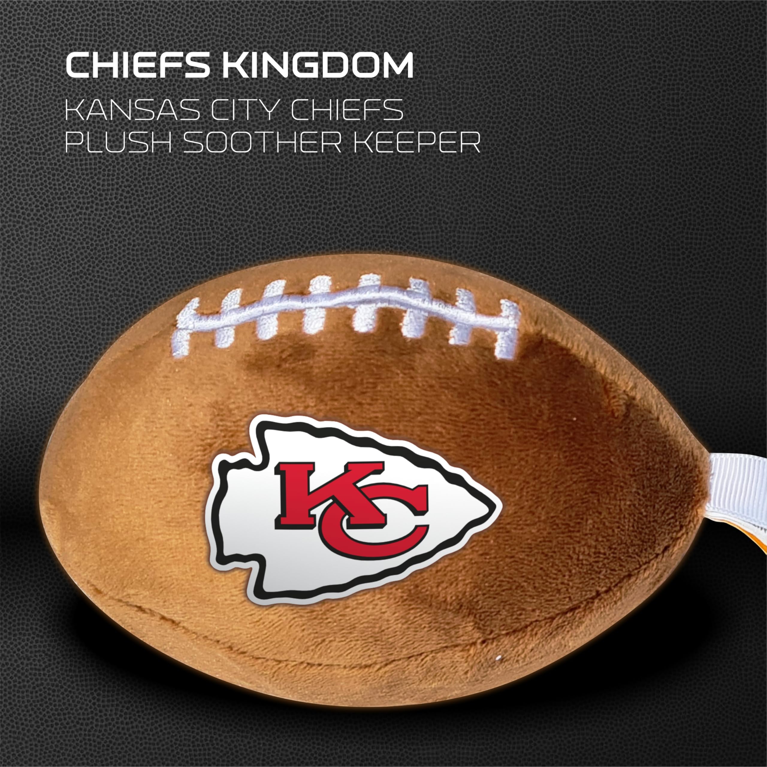 Chiefs Kingdom! Official NFL Licensed product β Play like the pros with this soft and safe plush football pacifier holder β perfect baby gift for young fans to show team pride with comfort, style, and spirit! All 32 NFL teams are available.