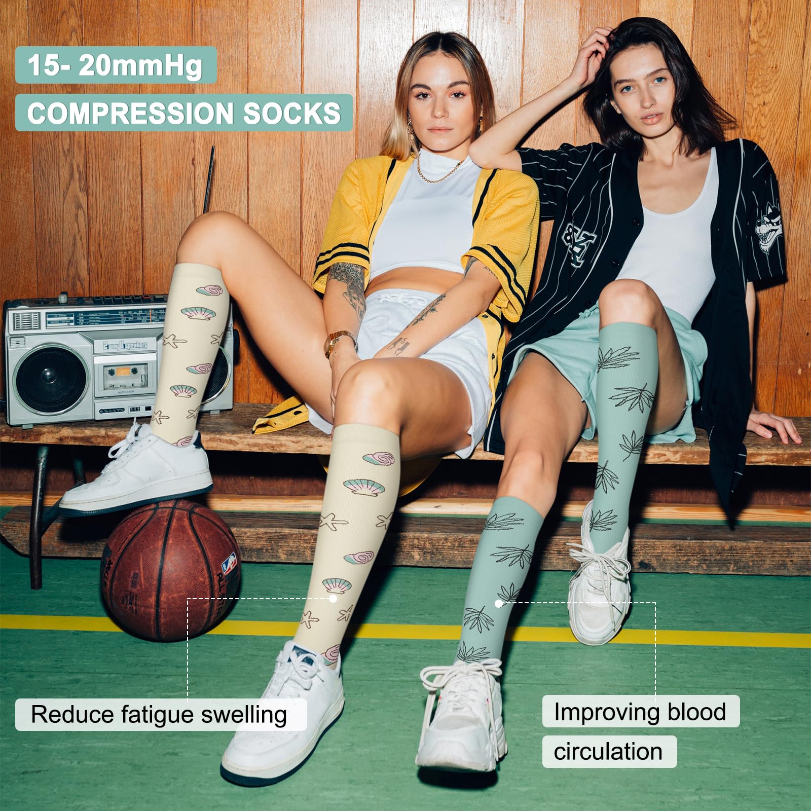 Compression for Optimal Support – These socks are engineered to provide compression that helps to reduce swelling, improve circulation, and relieve varicose veins. Made from nylon, they combine strength and flexibility, providing consistent compression throughout the day. Whether you’re recovering from a workout or standing for hours, these socks will provide immediate relief and comfort, making them perfect for both high-impact sports and long work shifts.