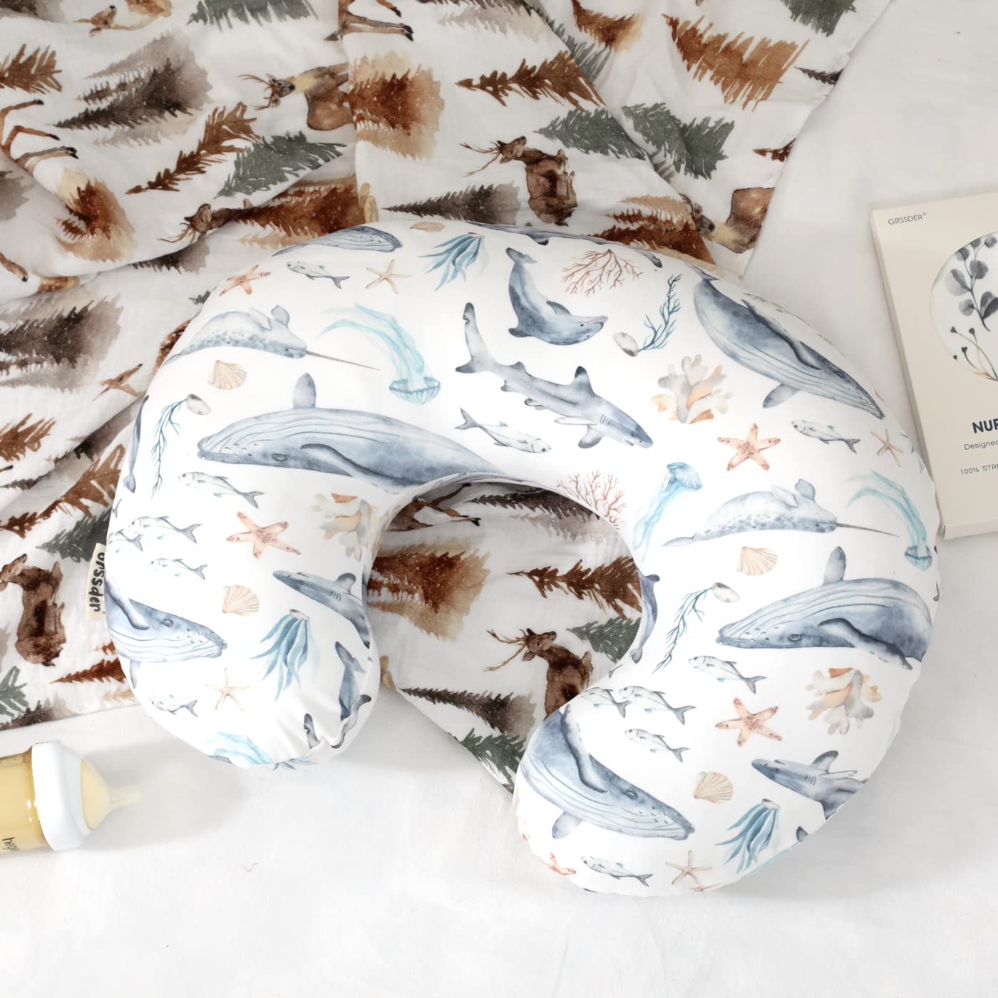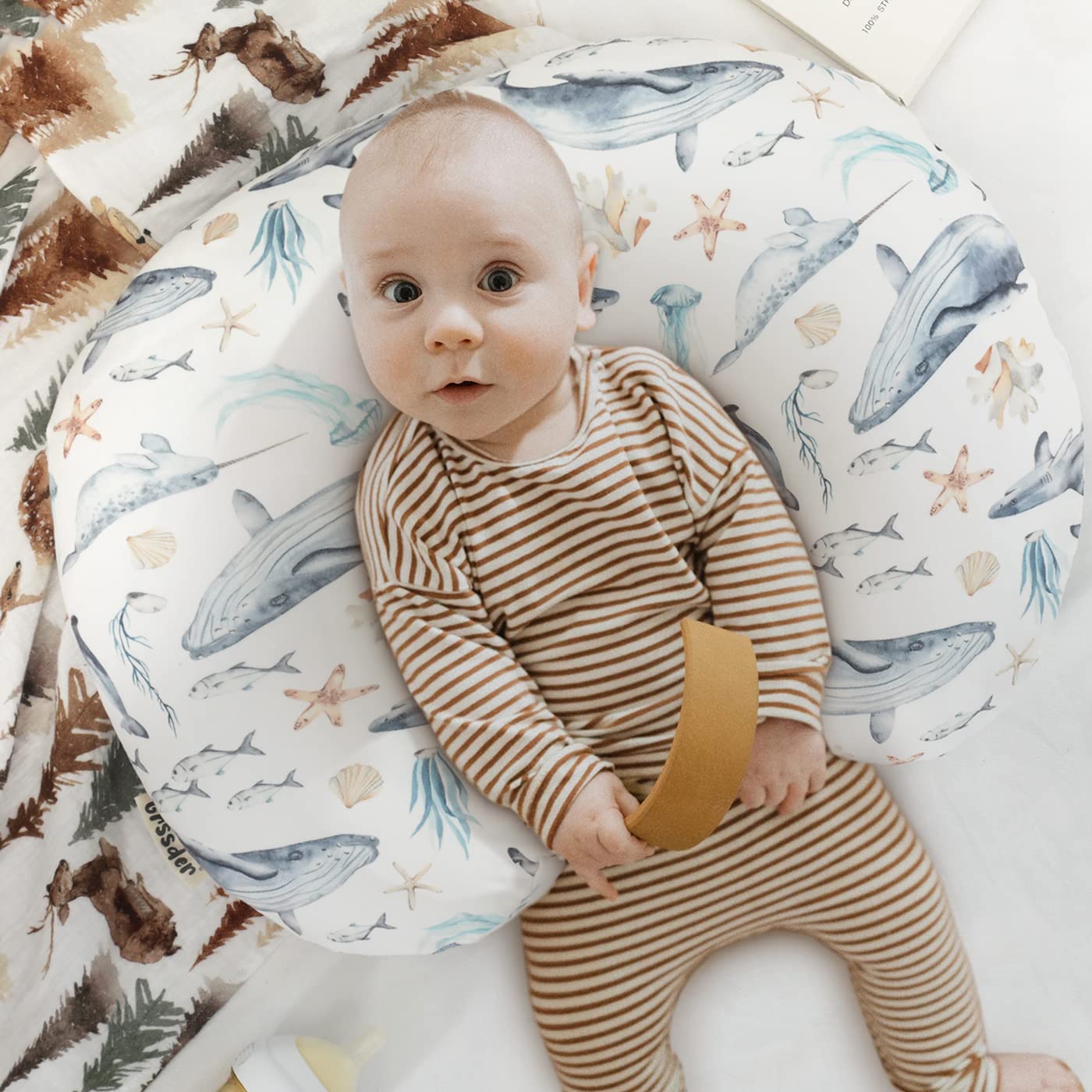 PERSONALIZATION AND FASHION: Our cute and unique watercolor sea world patterns make baby pillows more fashionable and more eye-catching than ordinary boring feeding pillows. Baby tummy time pillow can have their own style.