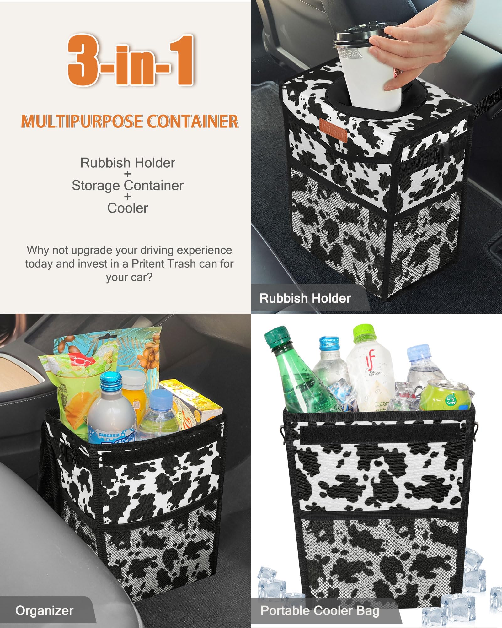 3-in-1 Multipurpose Container With 2 gallon Capacity:A game changer for a car neat and organized! It is not only a rubbish holder and car storage organizer, but a nice portable cooler bag for your car. Mesh pockets provide convenient storage places for things like tissues, extra trash bags, and cleaning wipes. The mesh pockets can hold anything you want to keep within arm’s reach in your car. Why not upgrade your driving experience today and invest in a Pritent Trash can for your car?