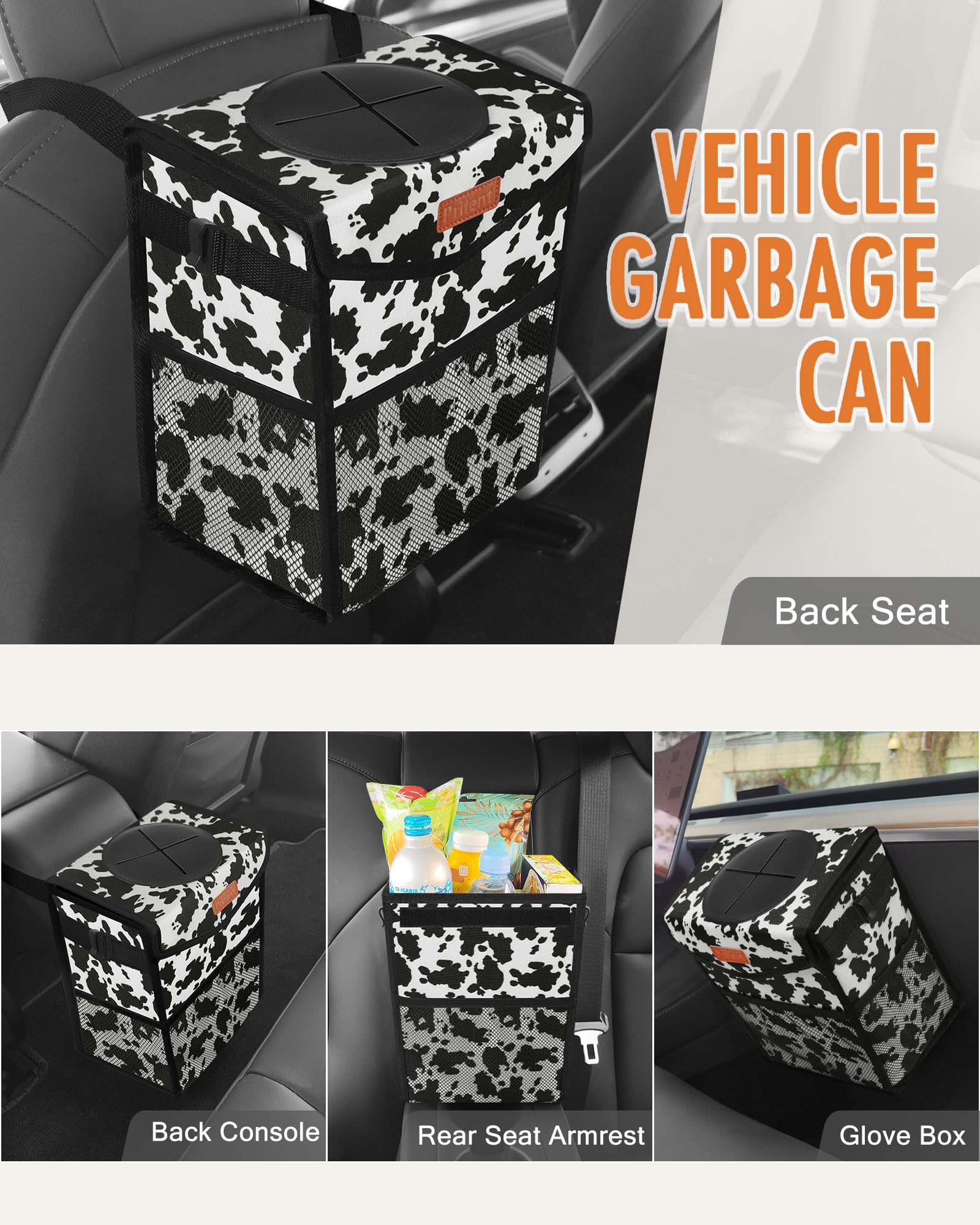 Practical PU Leather Cover & Unique Trapezoidal Shape:A garbage bin without a lid is like a garbage display box, which is embarrassing when there are other passengers. A trash can with a lid can make it look cleaner and tidier. It can keep trash from spilling out while you're on the go, and helps cover the waste and unpleasant smell inside. Designed with a quick-sealing PU leather lid, which can put objects in by just pushing it through the lid, and it will shut off automatically.