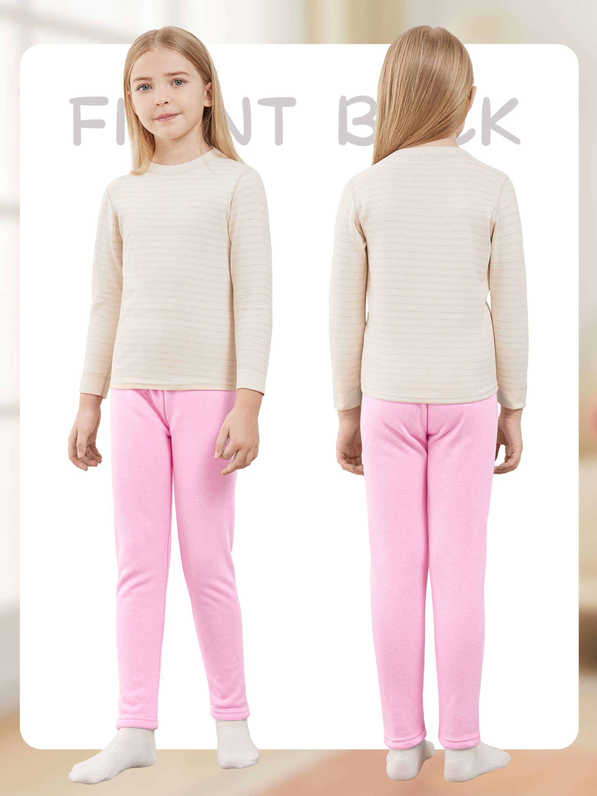 FLEECE LINED LEGGINGS: The outer layer of these warm leggings for girls is made of pure cotton and they are lined with fleece, making them elastic, soft, comfortable, and with excellent warmth.