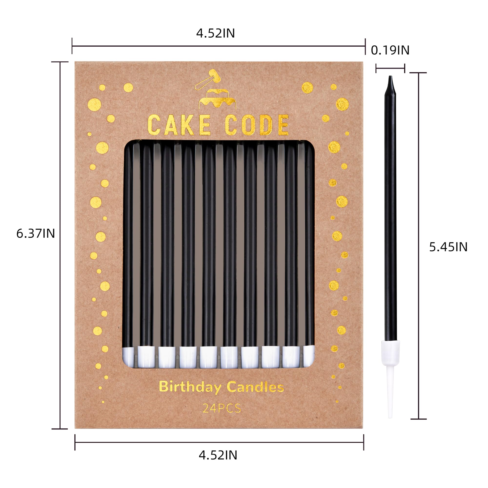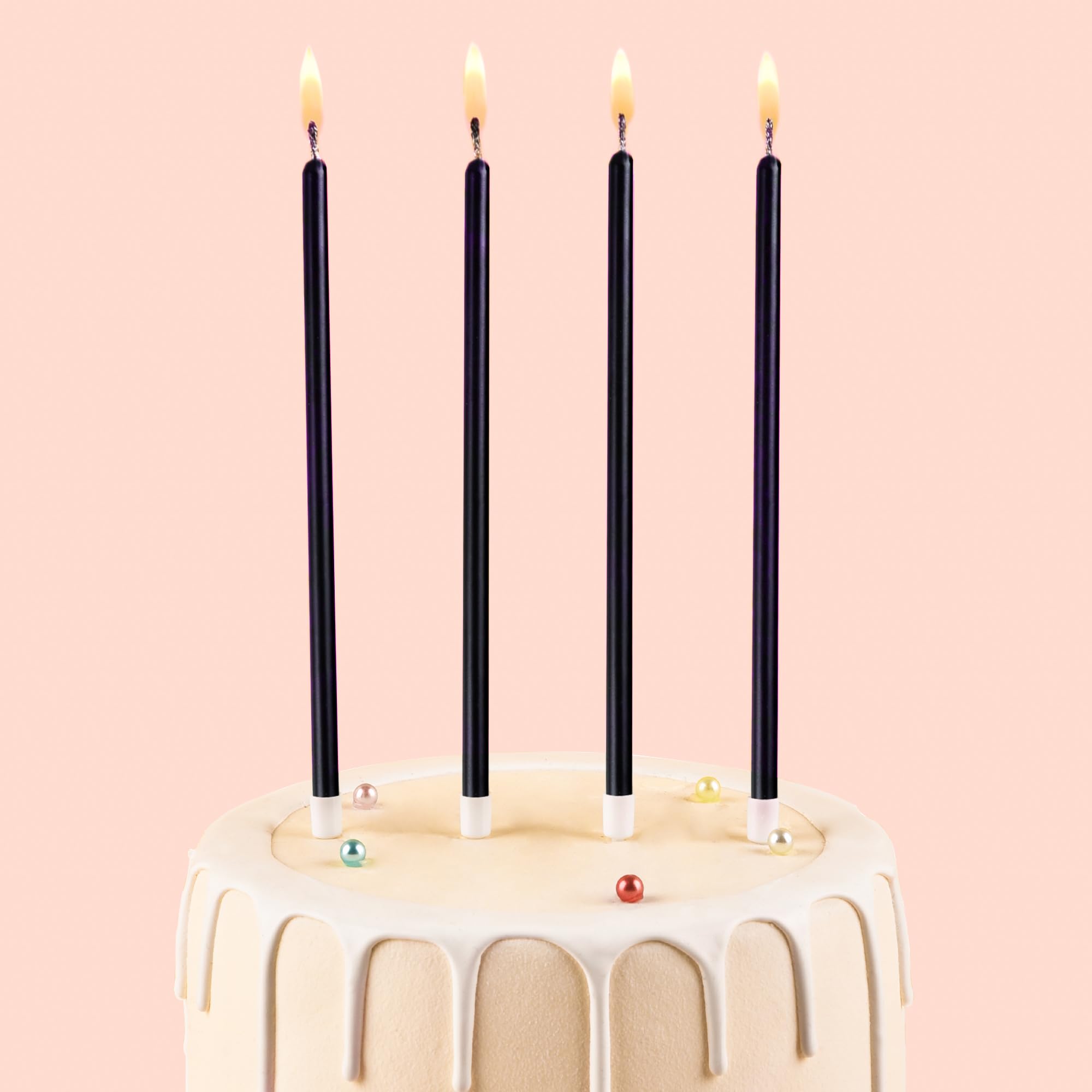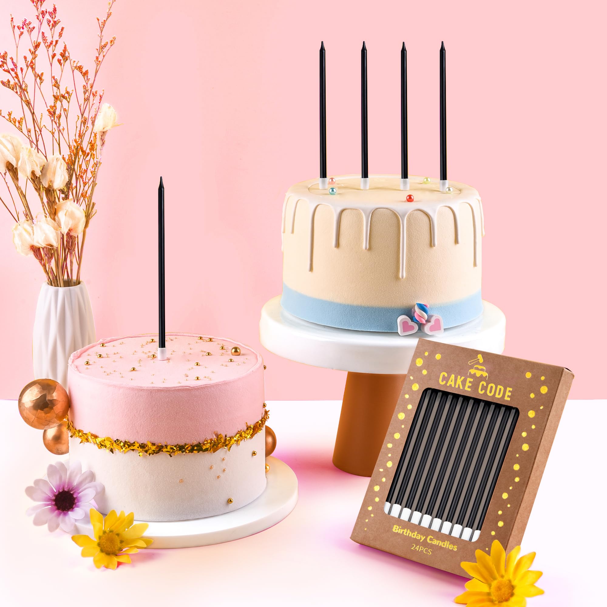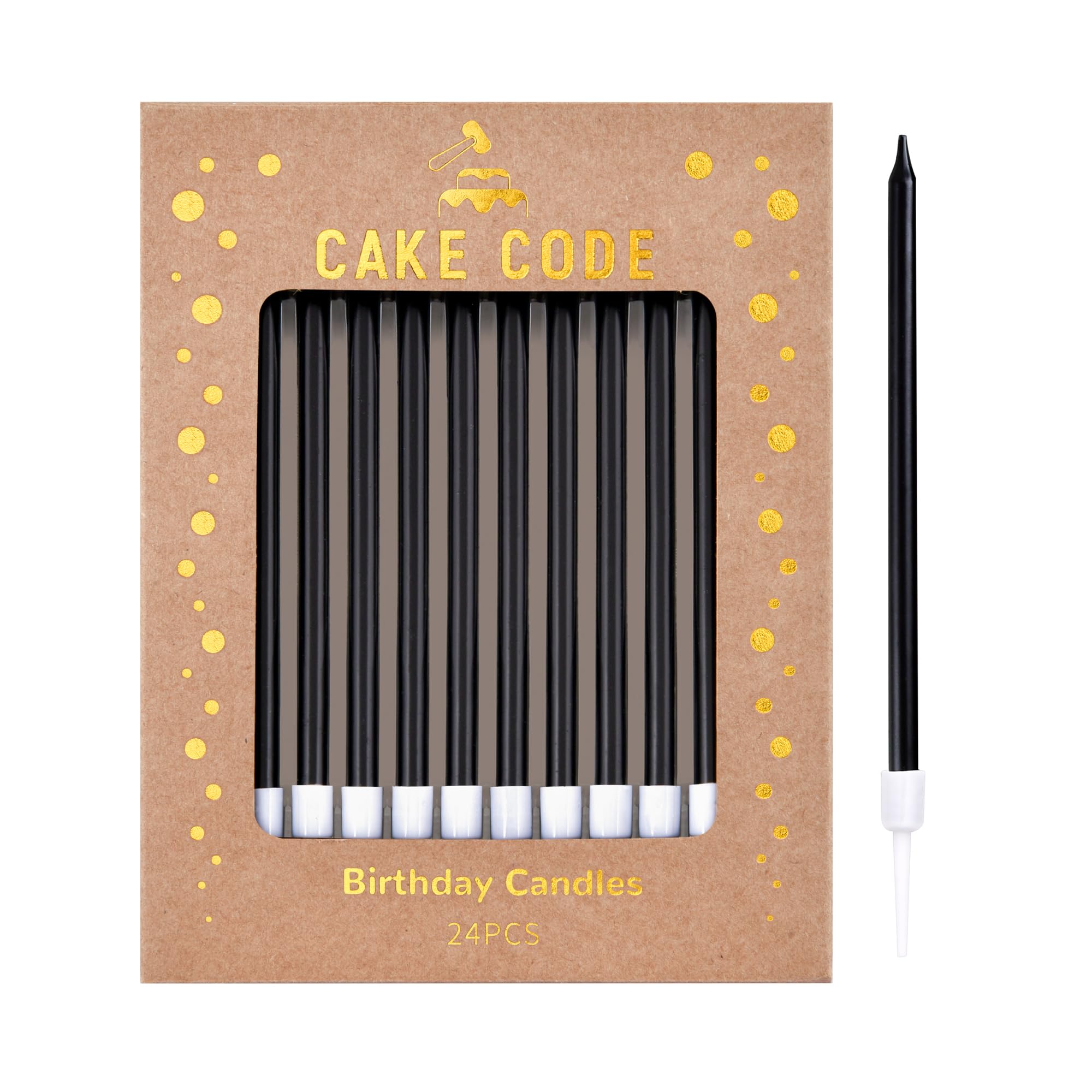 New: CAKE CODE's 24 long, thin & tapered elegant black cake candles are the perfect finishing touch to celebration cakes and cupcakes. Designed to make your celebration a truly lovely event.