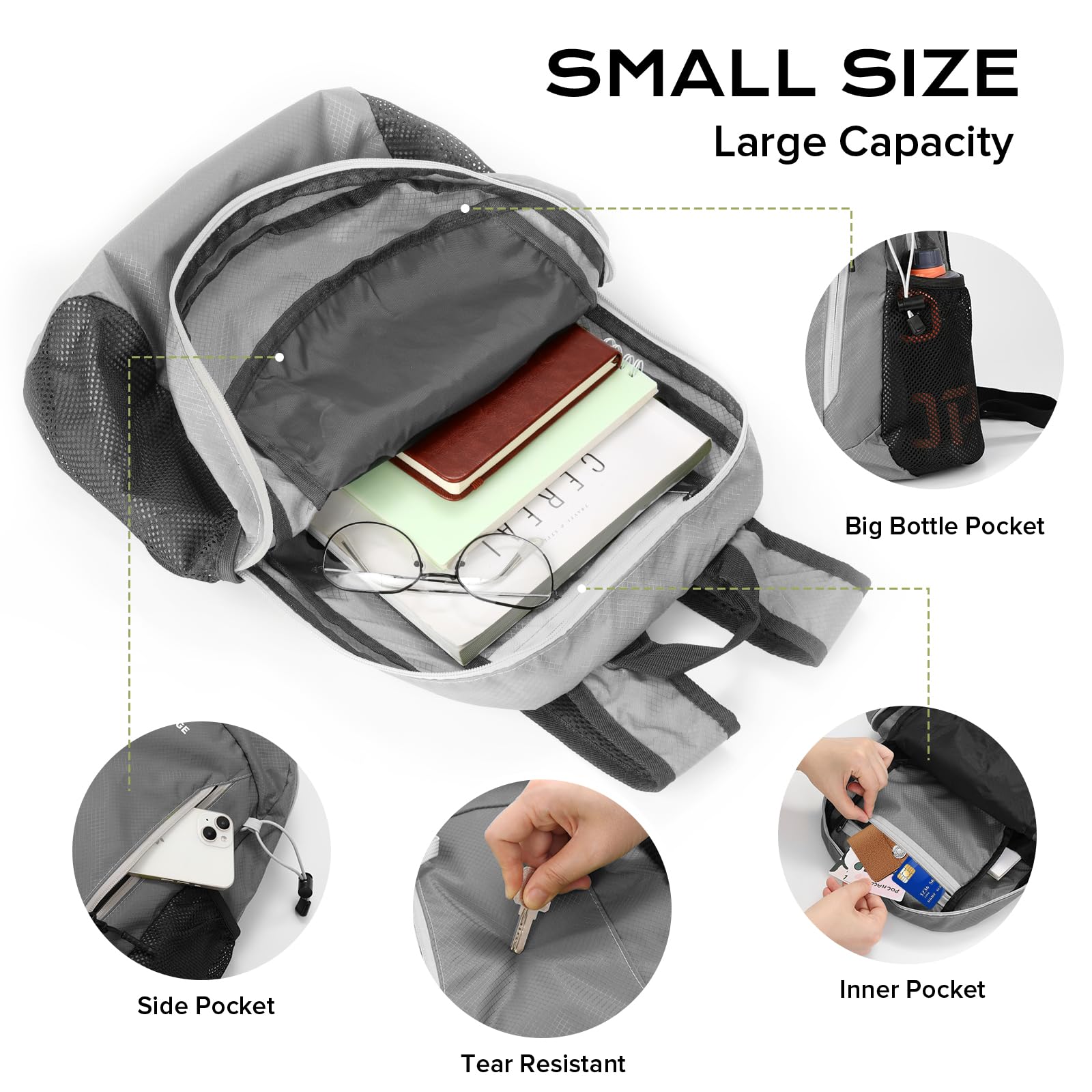 Foldable into a Pouch and Compact : When not in use, hikers can easily fold this collapsible small back pack into its inner pocket, as small as a palm, which can be easily packed into your bag or suitcase, providing additional storage space to carry extra gear or souvenirs