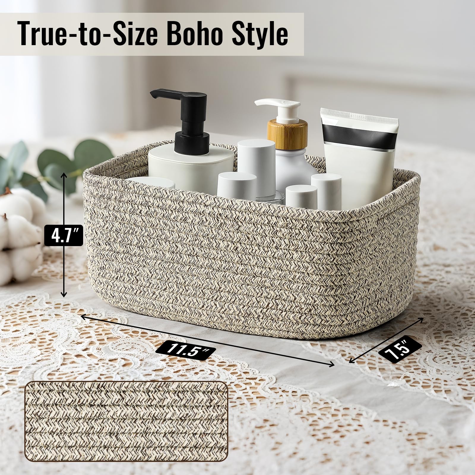 Soft & Baby-Safe Cotton Rope – Hand-woven with premium natural cotton, these baskets are ultra-soft, odorless, and free of sharp edges, making them safe for babies, pets, and delicate items