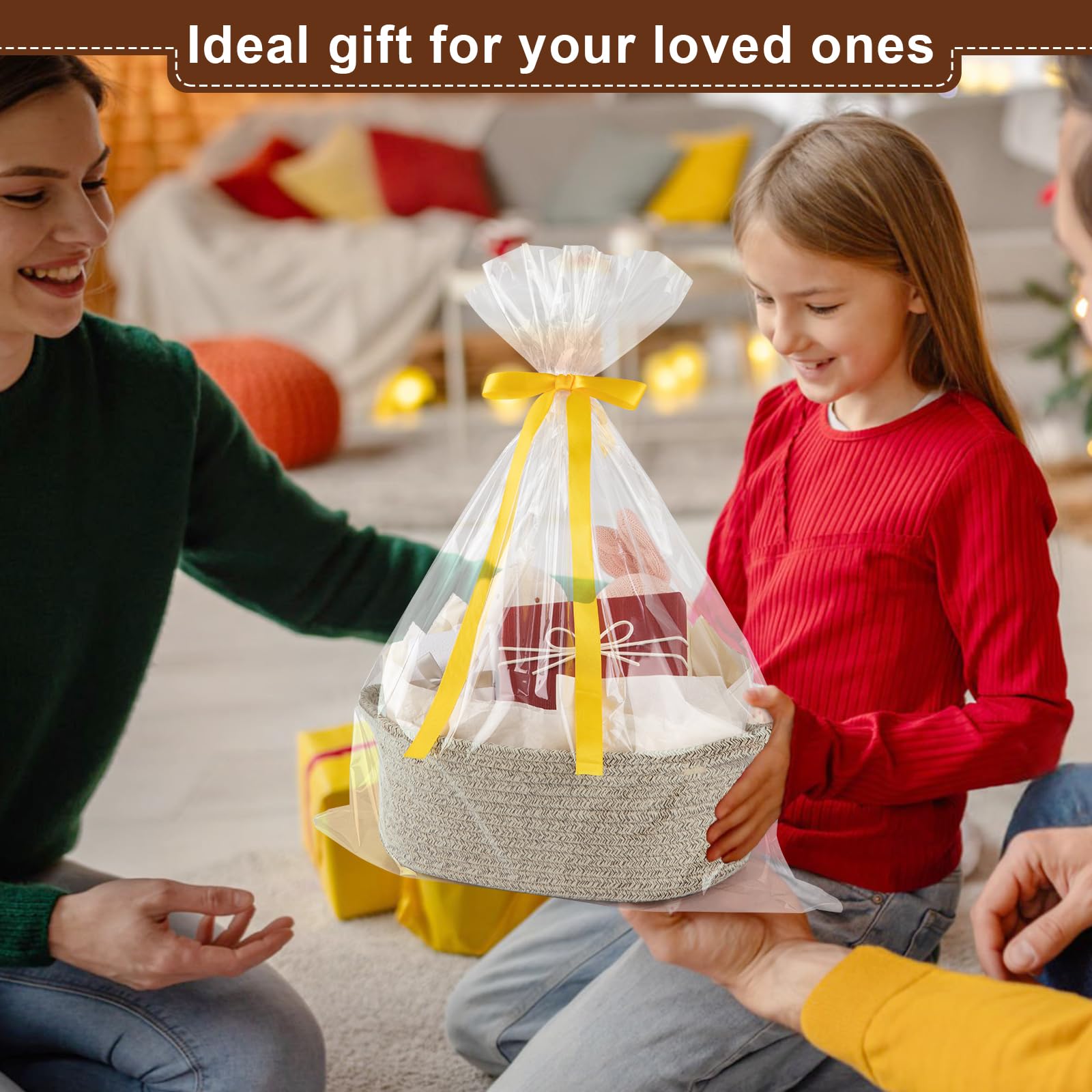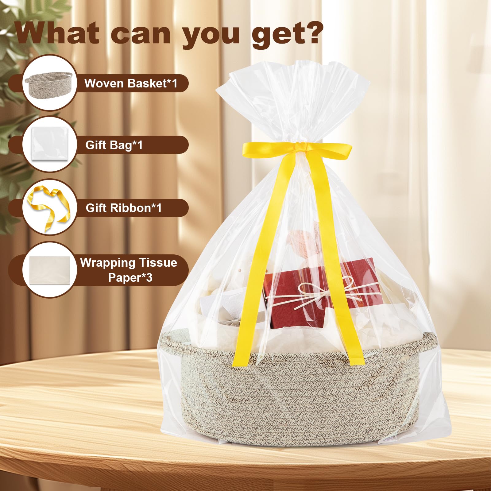 Ideal gift choice: This empty gift basket is cute and stylish, each small basket comes with a gift bag and ribbon, as well as 3 sheets of gift wrap tissue paper, which can better decorate, protect the stored items and can be used as a gift basket at any time