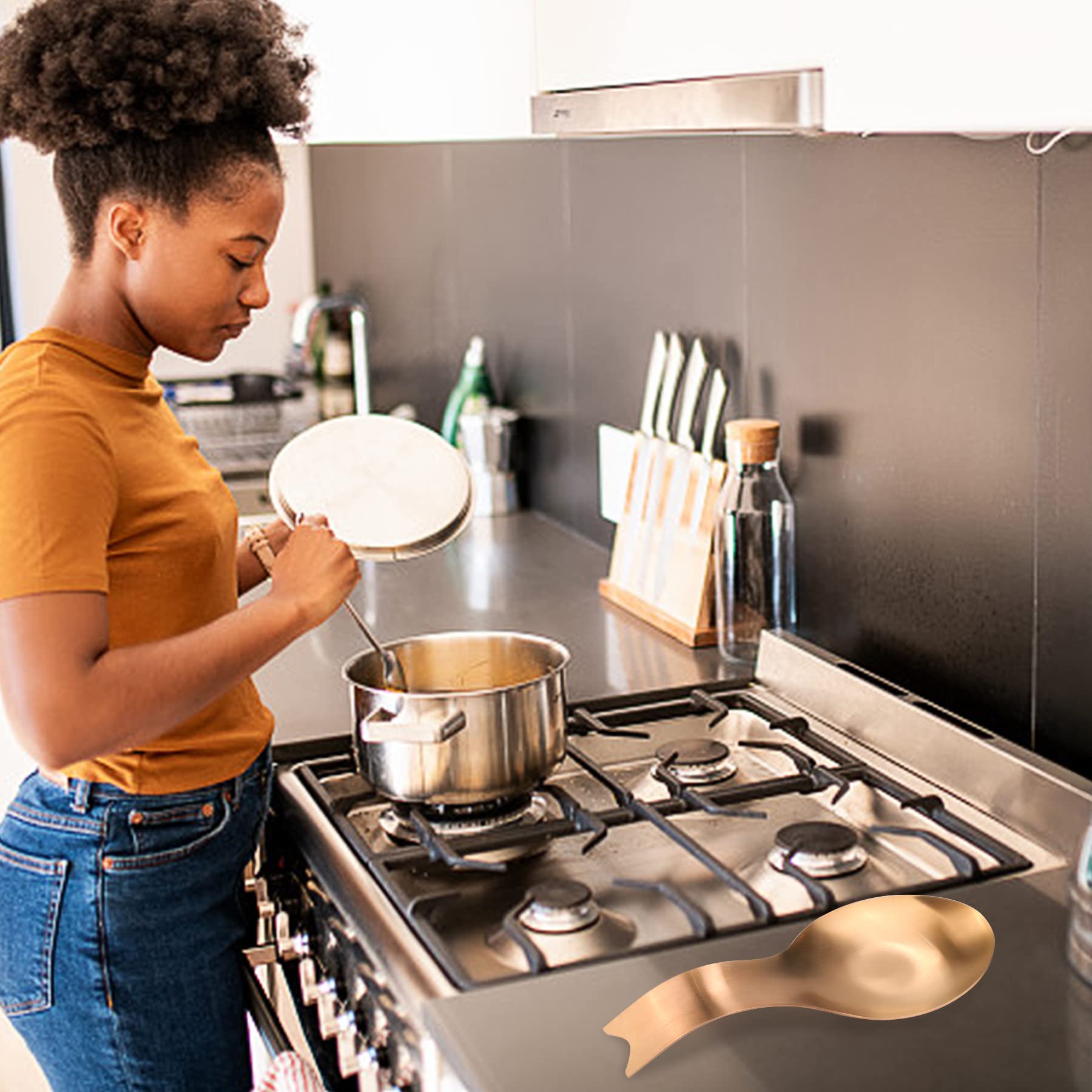 Heavy Duty: Spoon Rest is made from thick high quality 304 stainless steel, the edges are smooth and stylish, matte polish, sturdy and durable for years. Lead-free, Cadmium-free, Phthalate-free, BP#free made sure that the spoon rest is healthy and safe for daily use.