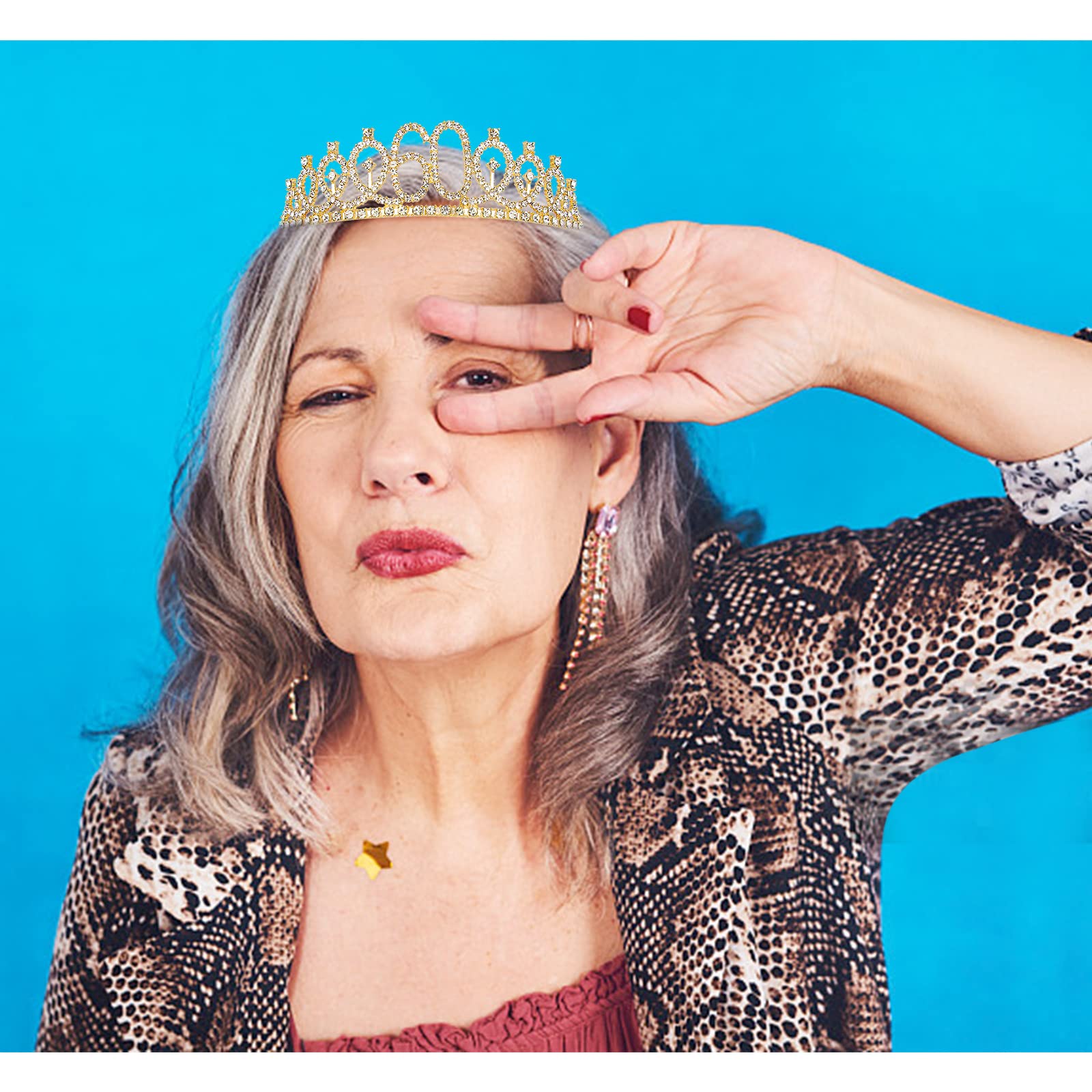 Gold Rhinestone Birthday Tiara:Beautiful sparkling tiara made with quality alloy metal and rhinestones,durable and comfortable to wear. The crown is in 4.9 inch length and 1.6 inch high.In addition to being used as a birthday tiara, you can also use it as a cake topper.