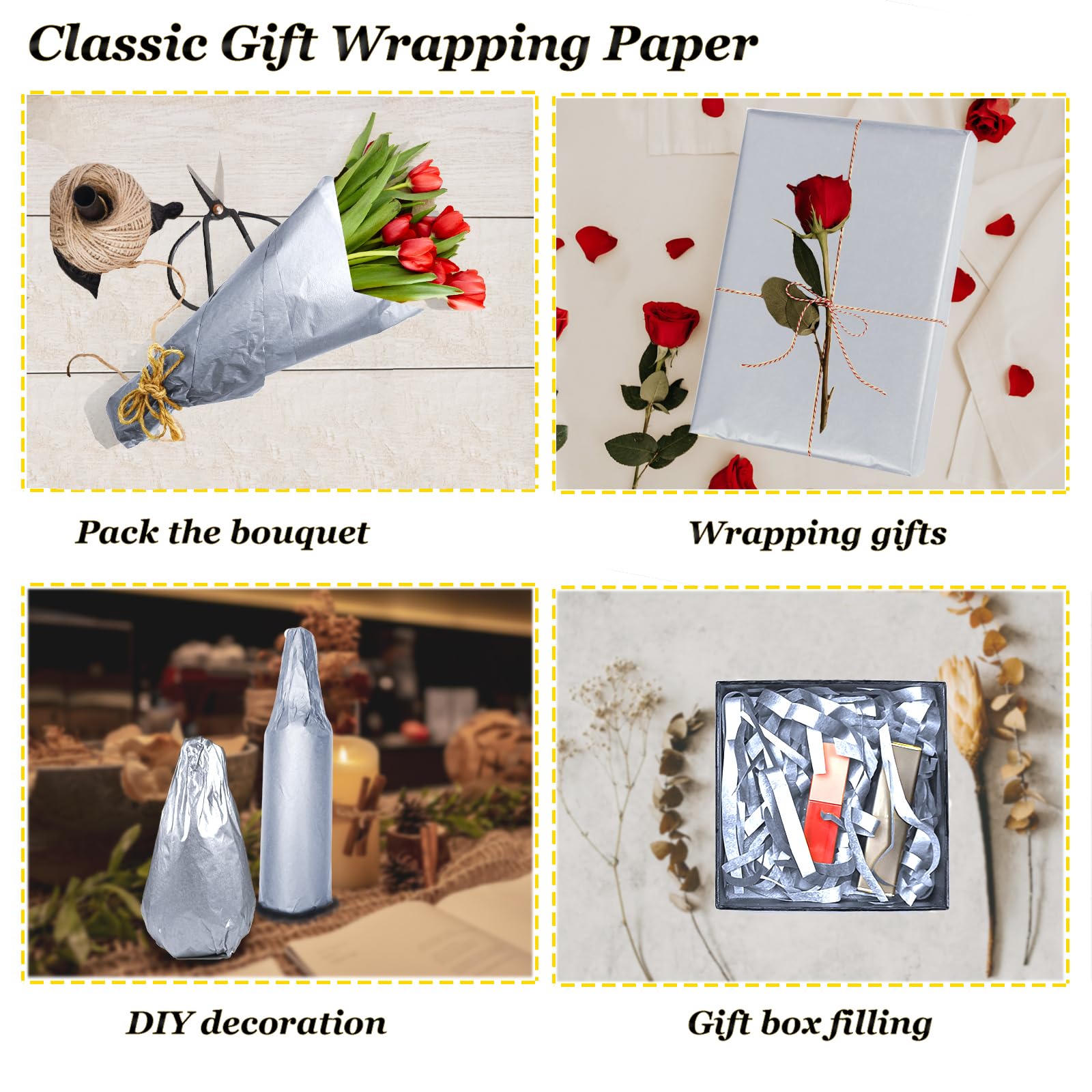 Excellent Quality: Our silver tissue paper can be used for paper art, and can also be filled with boxes. The tissue paper is soft and smooth surface, if it is used to wrap, it will meet your packaging needs