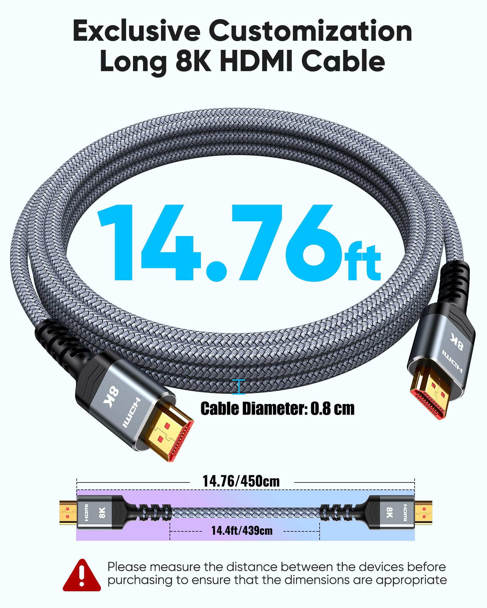 Reinforced high-quality materials: This 8K HDMI Cord uses Highwings' most popular classic style. The tail's anti-bending design has been upgraded to make it more durable. The military grade tensile nylon material also greatly extends its life.