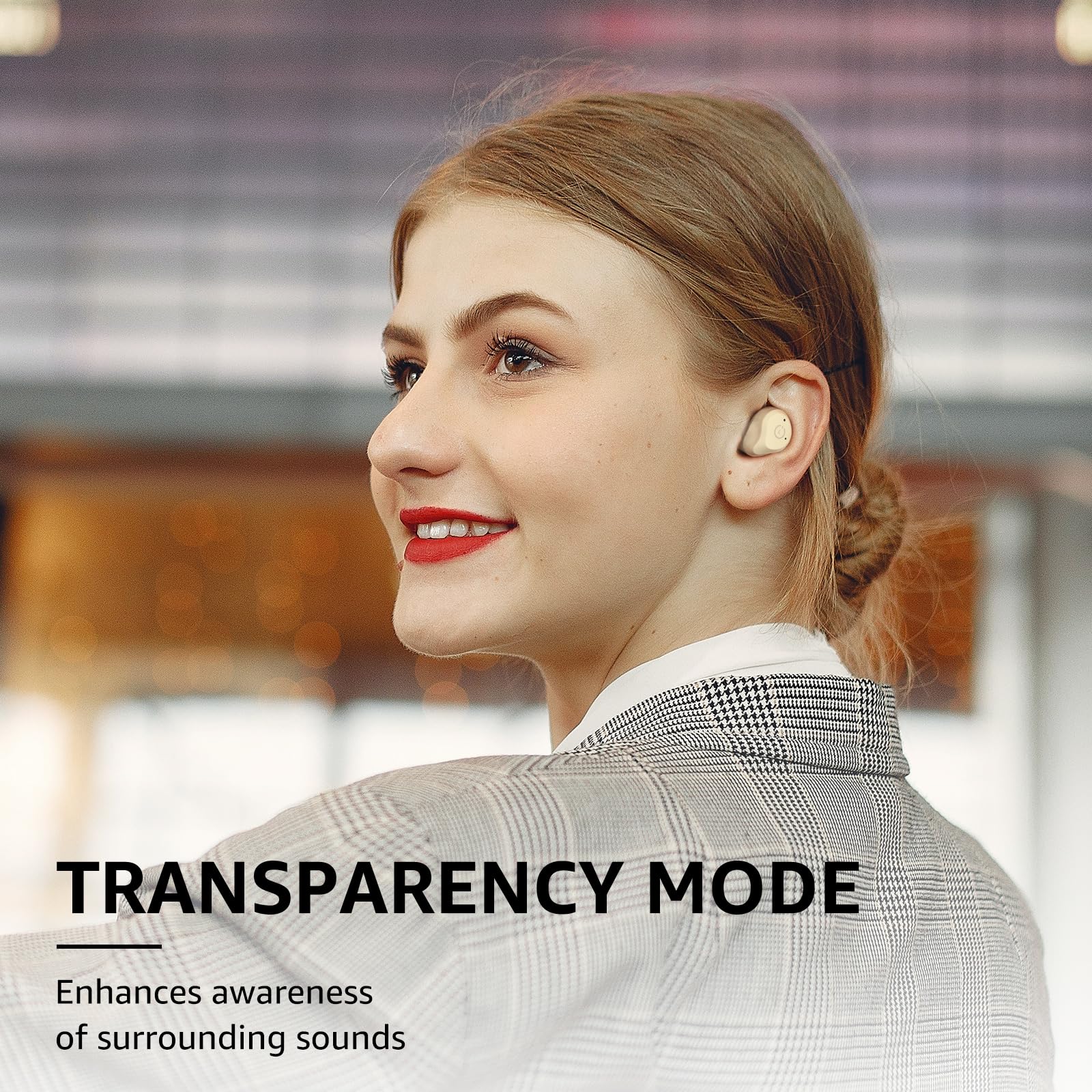 【Transparent Mode】You can hear what you want to hear, which lets outside sound in so you can hear and interact with the world around you. You can clearly hear the announcement of the airline or subway and what is saying around you without taking off the headphones.