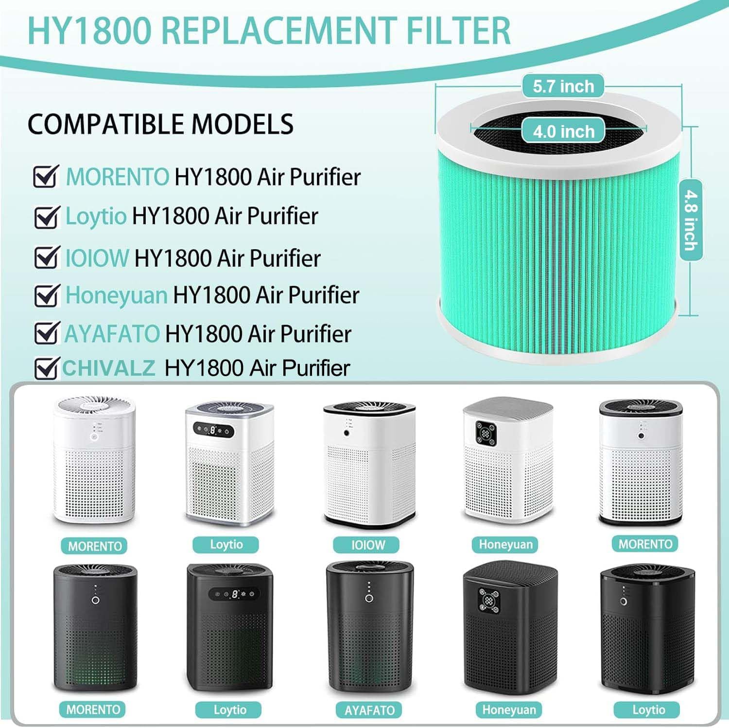 【Perfect Compatibility】This HY1800 air filter replacement is fully compatible with Honeyuan/MORENT/CHIVALZ/Loytio/OIOIOW/AYAFATO HY1800 Air Purifier, fit for Cobectal/Oterbear/FETIONS Air Purifier ZQA-2000A ZQA-2000B, with Extra 4-Pieces aroma pad(Please check the model number and product dimenstion of your air purifier before purchasing, thanks)