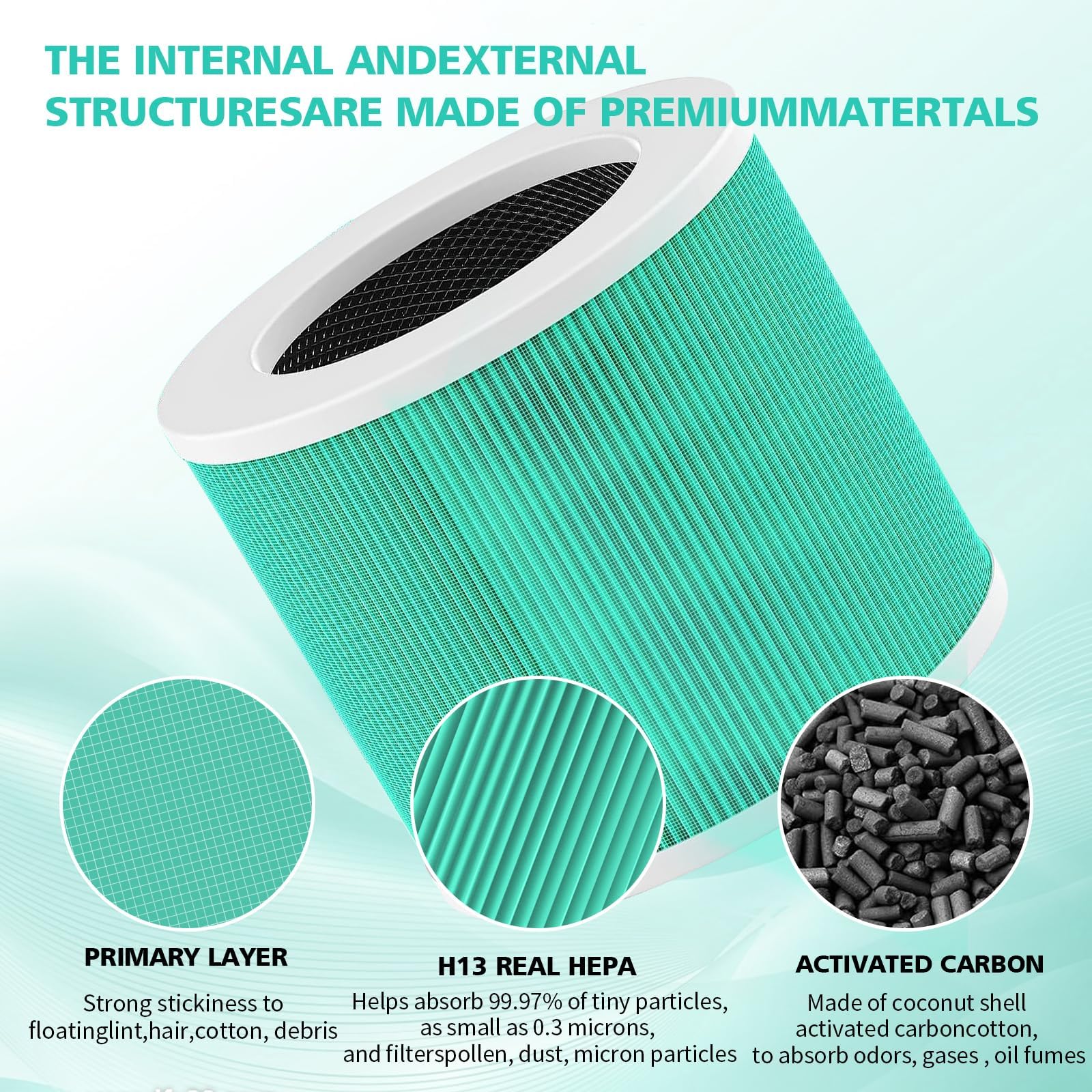 【3-Stage Filtration System】This HY1800 air purifier filter is High-efficiency 3-in-1 filtration system of HY1800 filter includes fine primary filter H13 true HEPA filter and upgraded carbon filter that work together for filtering particles and unwanted odors to improve the quality of the living environment for you and your pets.