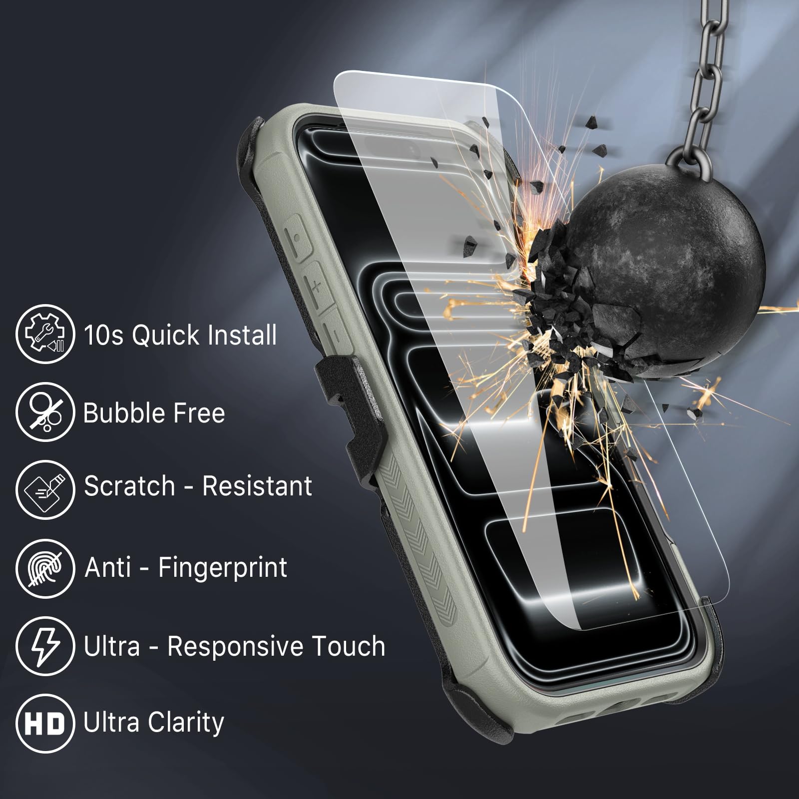 Extra Layer of Protection Case for iPhone 17 Pro Max:The 2.6mm Camera and 1.6mm Screen Raised Edges, Avoid Collision. Complete with a Tempered Glass Screen Protector, It Effectively Protects the Screen from Fingerprints, Smudges and Scratches.The Texturized Bumper Grip Prevents the Phone from Slipping out of Your Hands, Reducing the Risk of Accidental Drops and Slips.