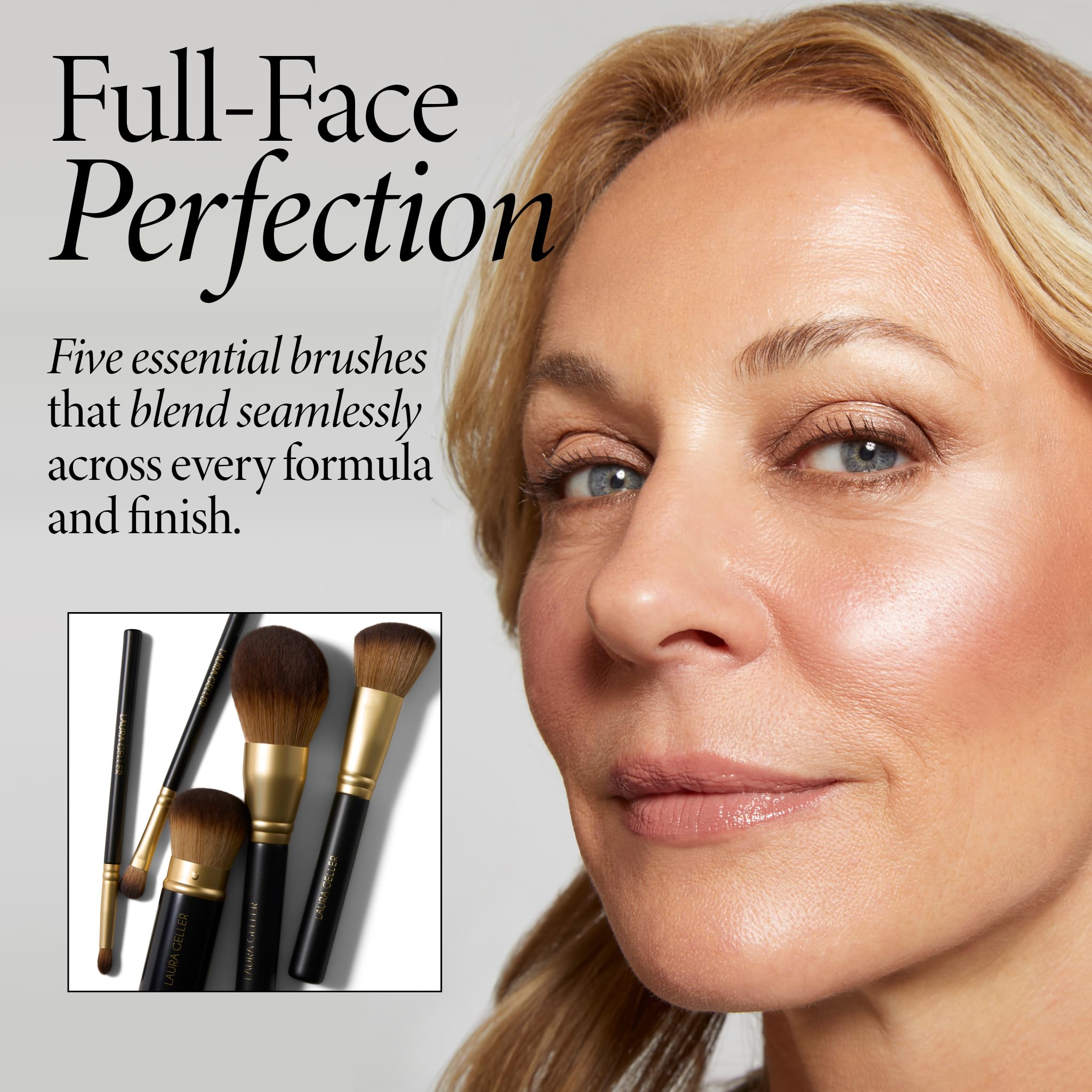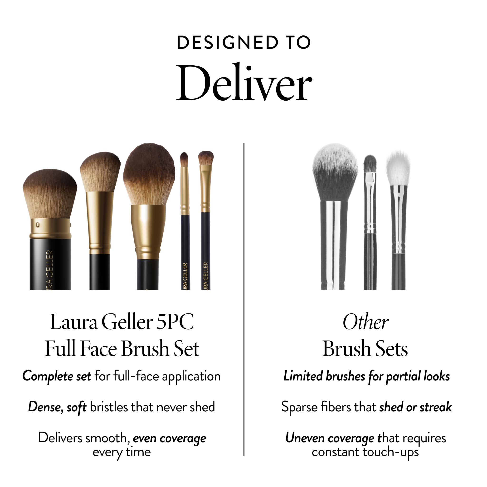 5PC FULL FACE MAKEUP BRUSH SET: This professional-grade set of synthetic vegan makeup brushes includes an Angled Blush Brush, Bronzer Brush, Airbrush Kabuki Brush, and two Eyeshadow Brushes.